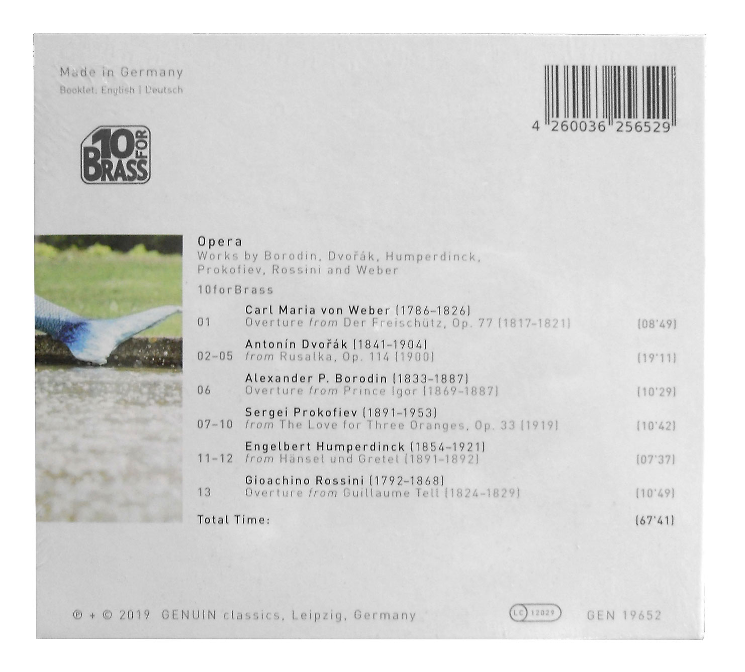 10forBrass-CD -Opera- 1. Carl Maria von weber - Overture - Der Freischütz, Op.77 2. Antonin Dvorak - aus Rusalka, Op. 114 3. Alexander P. Borodin - Overture - aus Prinz Igor 4. Sergej Prokofiew - aus die Die Liebe zu den drei Orangen 5. Engelbert Humperdinck - aus Hänsel und Gretel 6. Gioachino Rossini - Overture - aus Guillaume