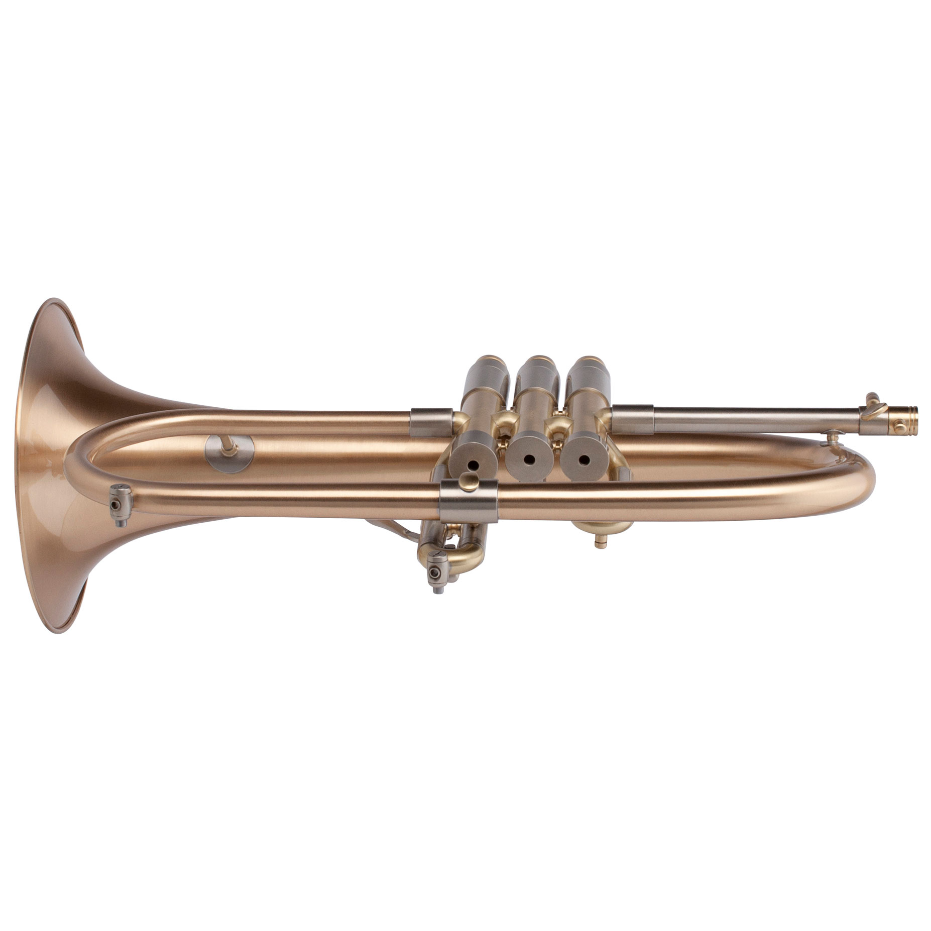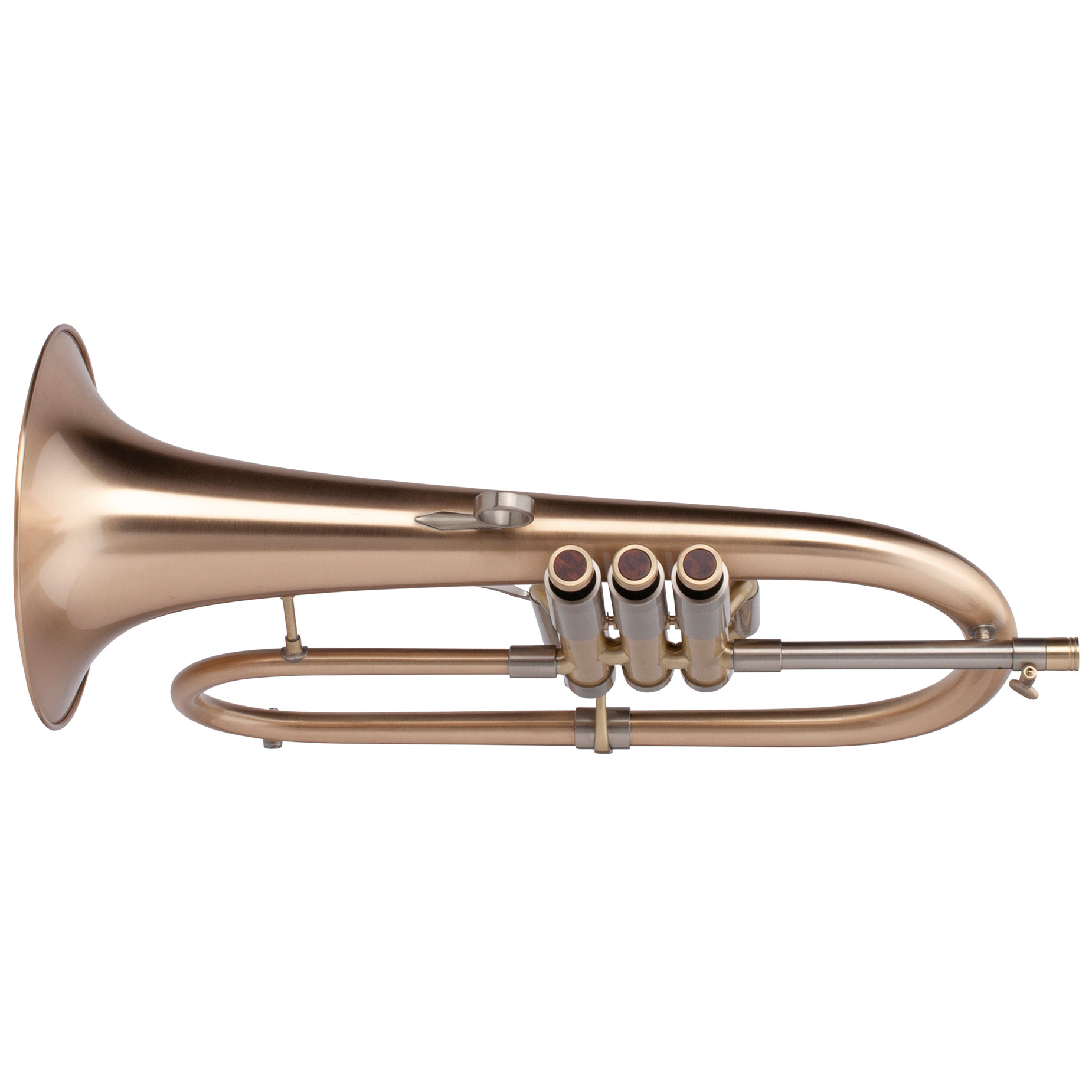 ADAMS-Flügelhorn F2 gebürstet, Stimmung: Bb, Schallstück: 0,55 mm Goldmessing, einteilig, handgehämmert aus Blech, Durchmesser: 170 mm, Bohrung: ML 10,5 mm, Oberfläche: Gebürstet lackiert, Mundrohr: Nr. 2 (0,402 inch) und Nr. 3 (0,413 inch), Ventilblock: Neusilber-Kappen mit Bronze-Gehäuse (schwer) Ventile: 3 x Top-Center Edelstahl, Trigger: Am 3. Zug, Ventildrücker: Messing, Holzeinlagen, Wasserklappe: Amado, Gig Bag: Inklusive, Zubehör: Ventilöl, Zugfett, Triggeröl, Reinigungstuch, Besonderheit: Alle konischen Teile handgehämmert aus Blech. Das F2 wird standardmäßig mit einer ML-Bohrung von 10,5 mm und einem Schallstückdurchmesser von 170 mm geliefert. Die Besonderheit des Instruments ist sein gewichteter 535-Gramm-Messing-Ventilblock und die schweren Stütze. Das einteilige, handgehämmerte Schallstück aus Goldmessing ist warm und reichhaltig, gibt aber dennoch ein gutes Feedback an den Spieler. om Design her sticht das Instrument mit seiner gebürsteten Oberfläche und den Ventildrückern aus Snakewood hervor.