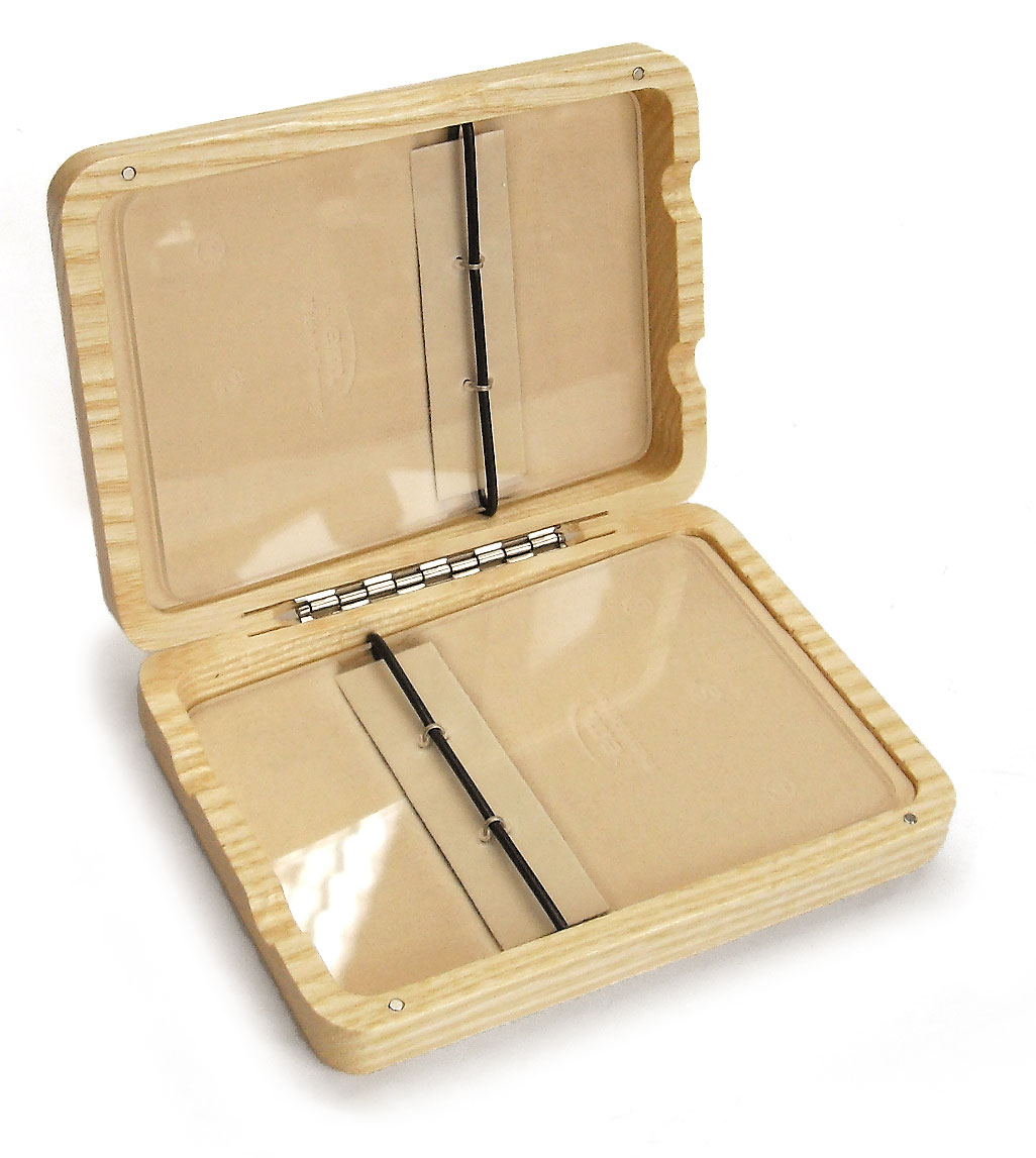 aS-Blattetui Tenorsaxophon für 6 Blätter, natur, Holz, Samt gefüttert, mit Verschluß und Glasplatte mehr