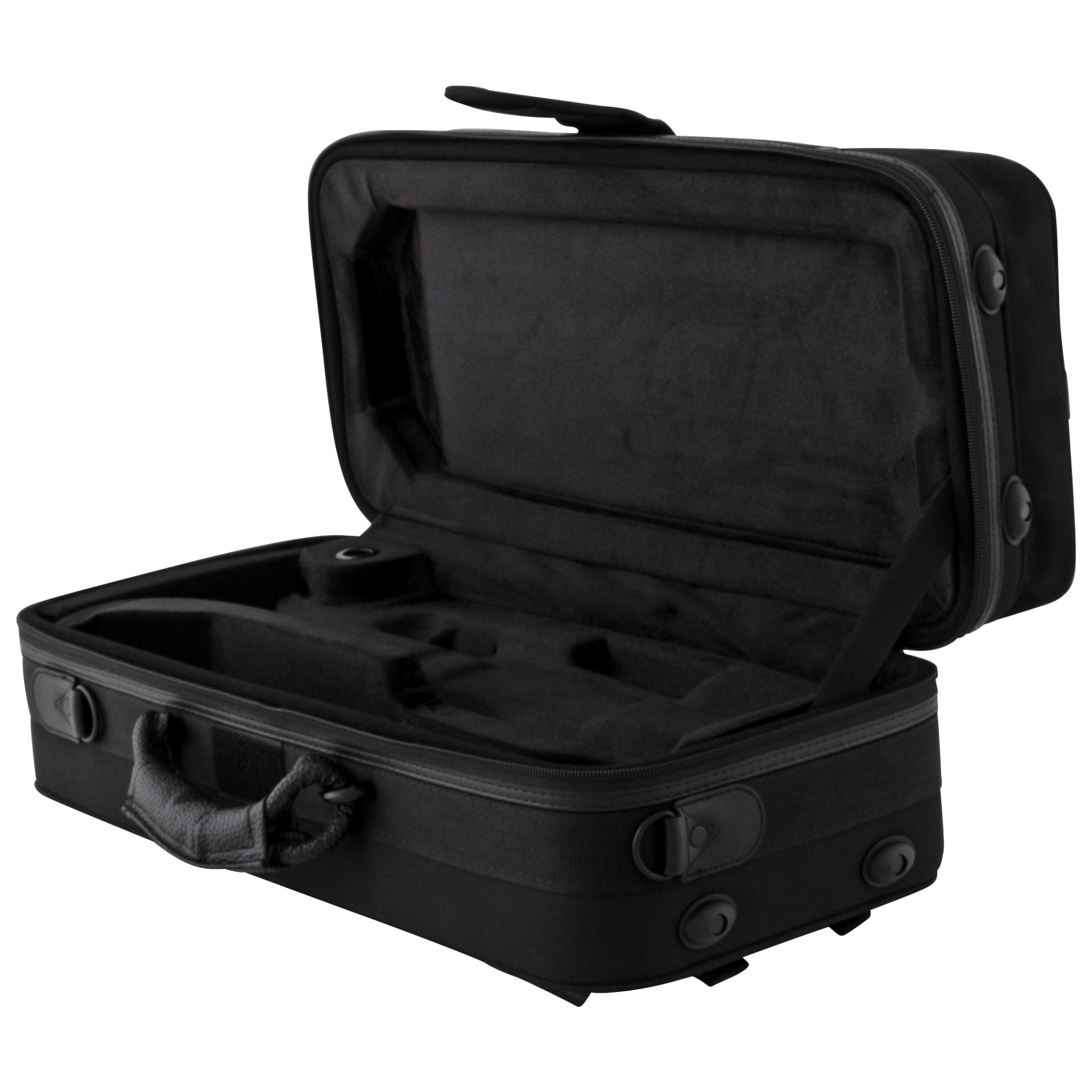 aS-Leichtkoffer Trompete - BLACK DESIGN -, neues Design, große Außentasche, zusätzliche Fächer für Bleistifte, etc., schwarz gefüttert, stabiler Griff, integrierte Rucksackriemen Außenmaße 56x28x20 cm. Maße Außentasche 24x22 cm. Gewicht: 2,9 kg. Sehr attraktives DESIGN. Stabile Rahmenkonstruktion. Außentasche. Gepolsterter Schulterriemen. Gepolsterte verdeckte Rucksackriemen. Hochfestes wasserabweisendes Nylongewebe. YKK Reißverschlüsse. Paspelierte Nähte. Stabile Metall-Karabinerhaken an allen Riemen. Instrumentenschützender Innenseinsatz in schwarz. 4 Abstellfüße an der unteren Stirnseite. Stabile, komfortable Griffe.
