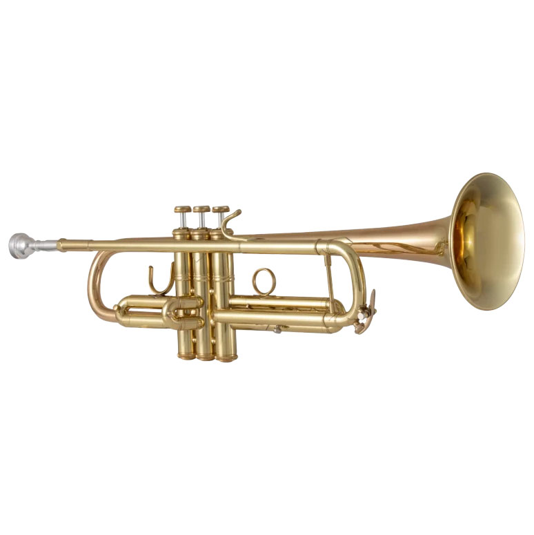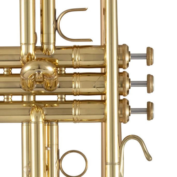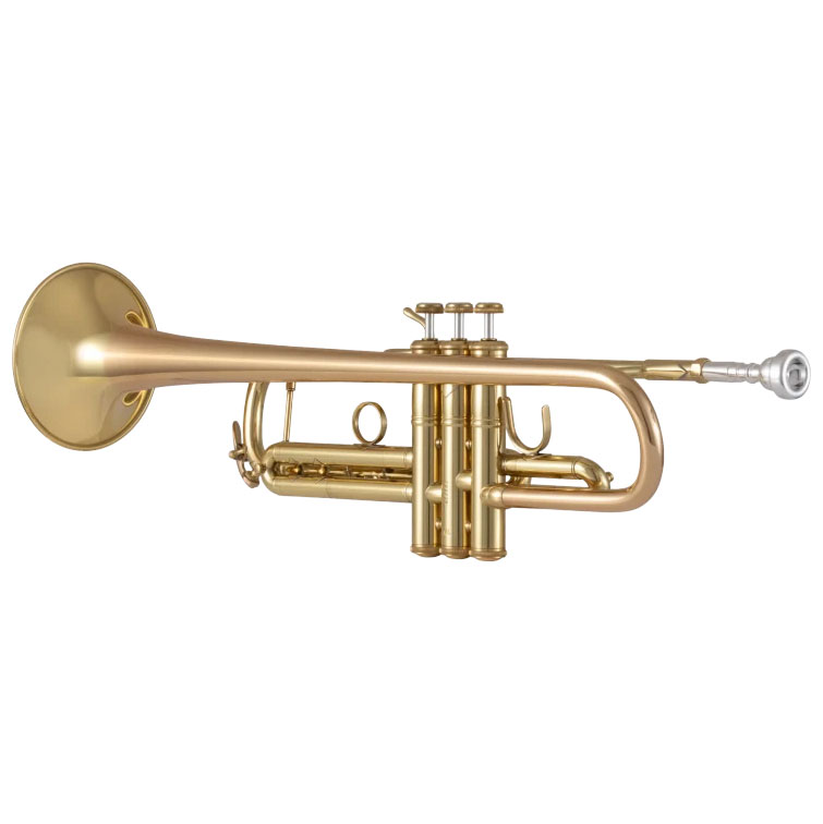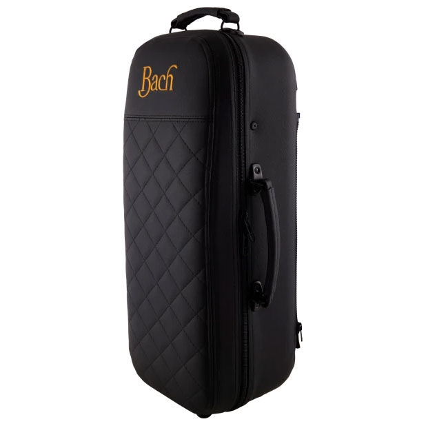 BACH-Trompete 17043GY, lackiert, einteiliges Ventilgehäuse aus Messing, mit Innen- und Außenzügen aus Messing, zweiteiliges #43GYSchallstück aus Goldmessing, mit Stürze aus Messing, mit Messingdraht im Schallstückrand, Bohrung ML (11,66 mm), Daumensattel am 1. und Fingerring am 3. Ventilzug, NEUES 6R Mundrohr aus Messing - Das am schnellsten ansprechende Mundrohr, das BACH für optimale flexibilität und maximalem Spielkomfort herstellt. Mit de Luxe Koffer und orig. VINCENT BACH 7c Mundstück.