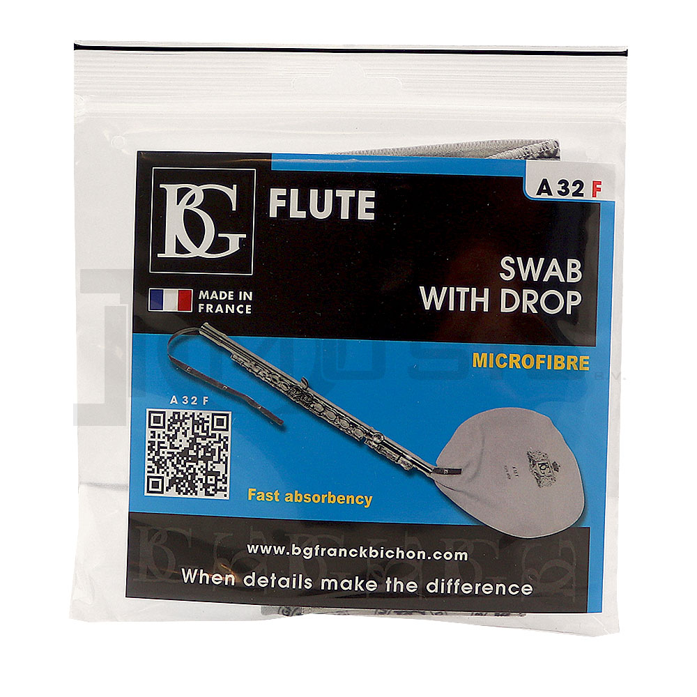 BG-Durchziehwischer A32-F Querflöte, perfekt auf Ihr Instrument abgestimmter Durchziehwischer aus Mikrofaser. Schlauchförmige Zugschnur mit eingearbeitetem Gewicht Waschmaschinenfest, hält 5 Jahre und länger. Hoch saugfähige Mikrofaser. Fusselfrei und ohne chemische Zusätze. BG Pflegetücher und Wischer bestehen aus eigens von BG entwickeltem Mikorfaser, das besonders weich und saugfähig ist und die Oberflächer Ihres wertvollen Instrumentes nicht verkratzt. Das Mikrofaser-Gewebe wird in Frankreich, ohne Verwendung chemischer Zusätze, hergestellt und ist in der Maschine waschbar.