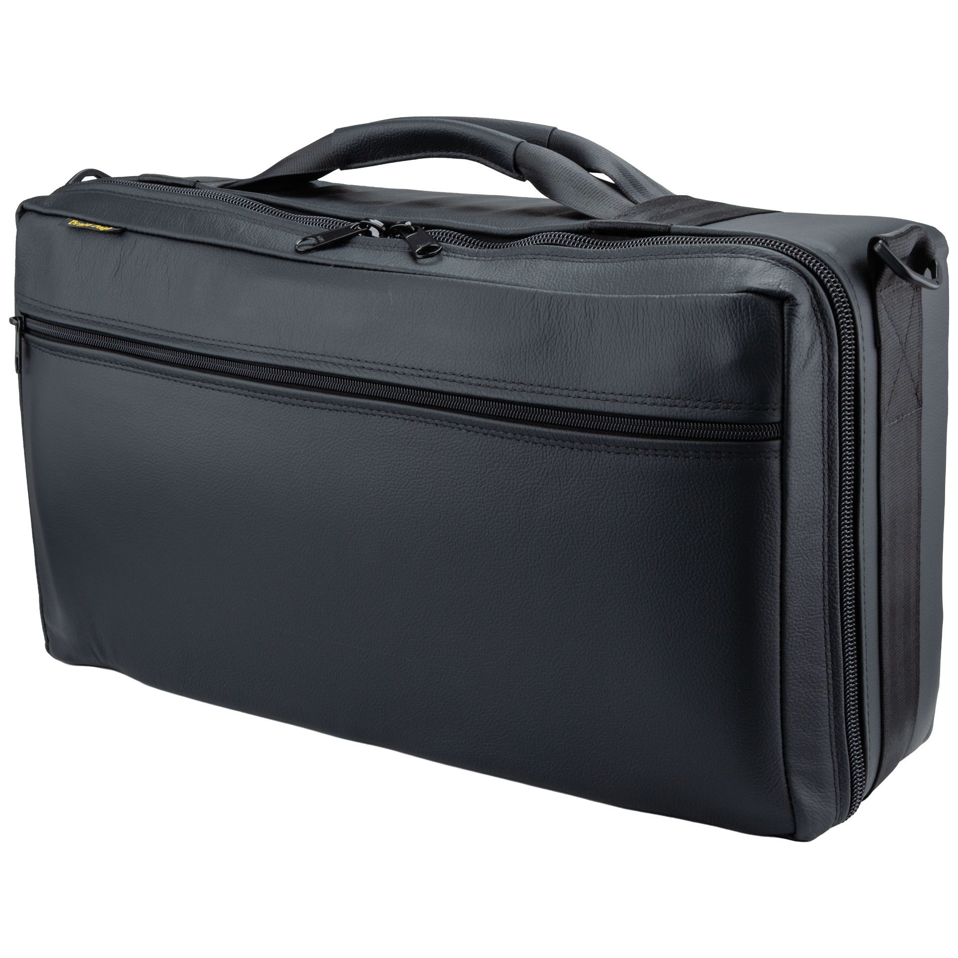 BRASS BAGS -Premier- 3er Trompete, Leder. Laut Hersteller das kompakteste und leichteste Triple Gig Bag der Welt, kaum größer als ein Standard-Bach-Einzelkoffer und von Top-Profispielern überall verwendet. Hergestellt aus hochwertigem Material und mit abnehmbaren Schulter- und Rucksackgurten. ZUsätzliche Verstärkungen sorgen für optimale Sicherheit für Ihr Instrument. Es gibt viel Platz für Zubehör sowie Platz für einen Laptop oder ein iPad. Ungefähre Abmessungen sind 56 x 31 x 20 cm. Gewicht ca. 2,5 kg