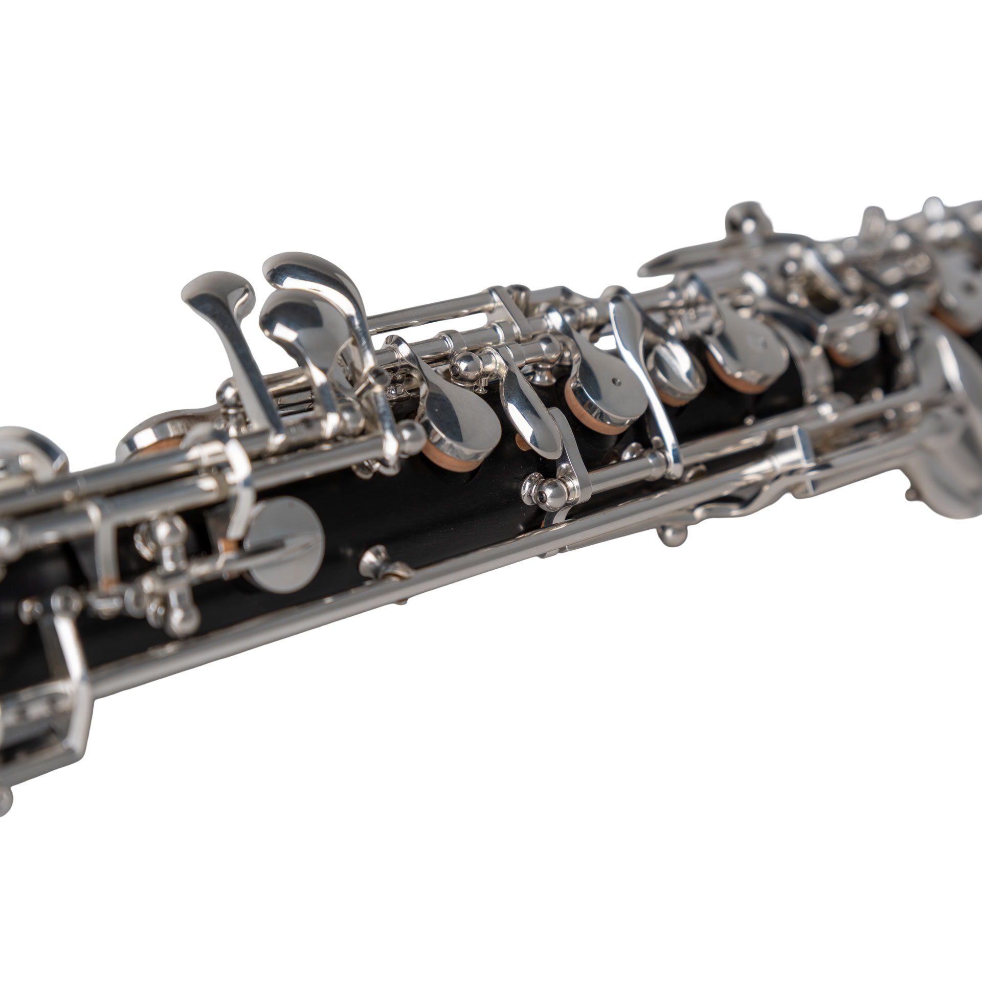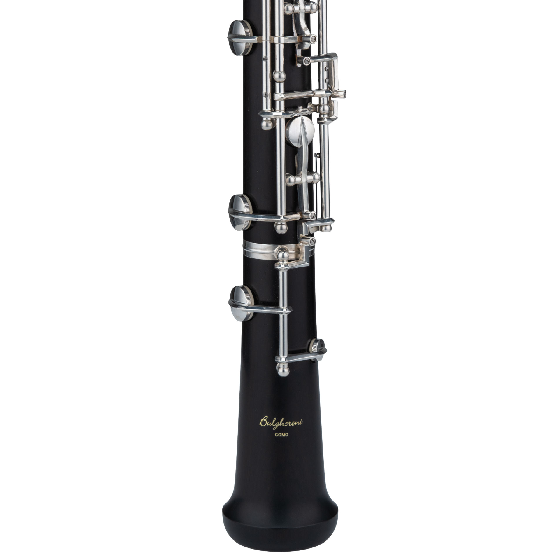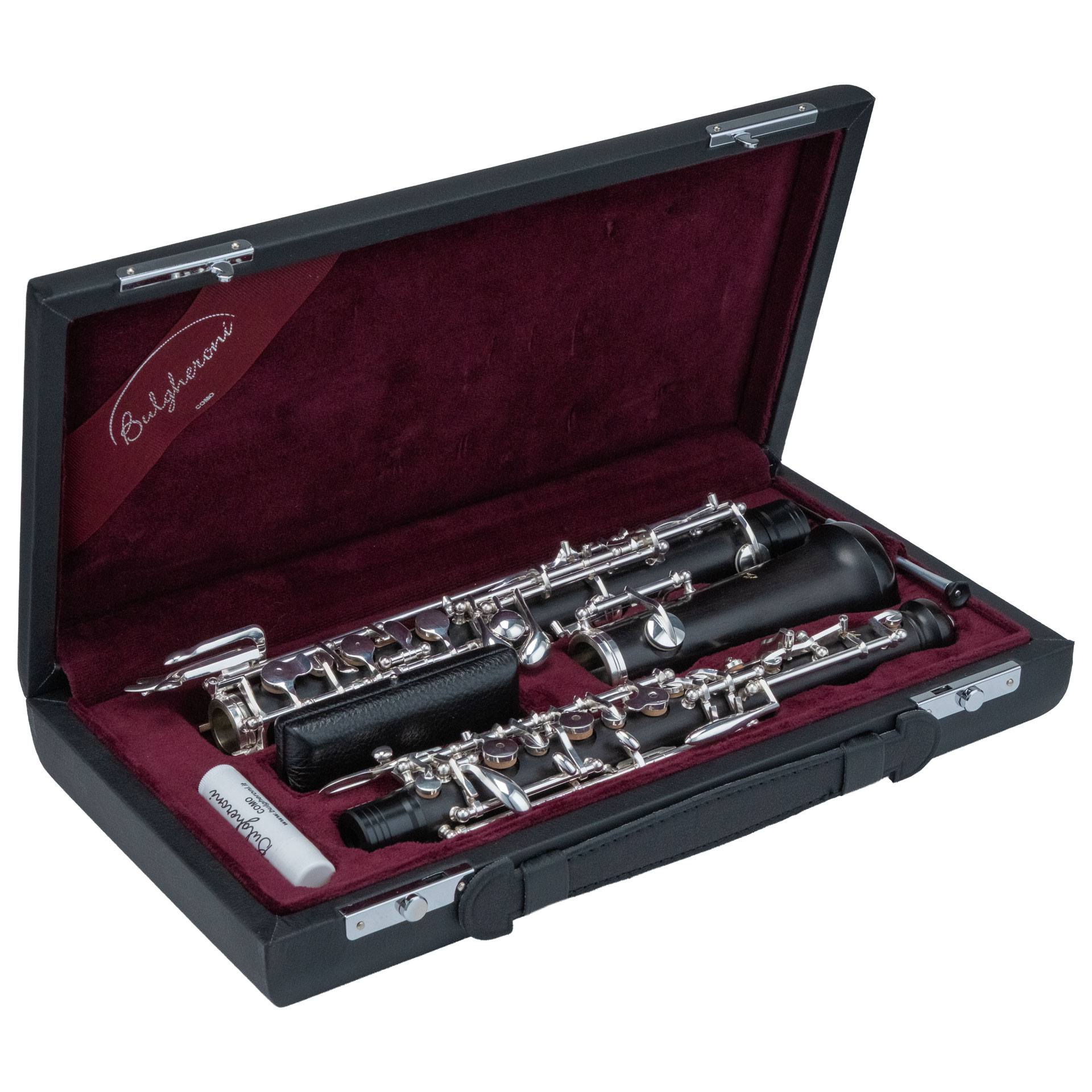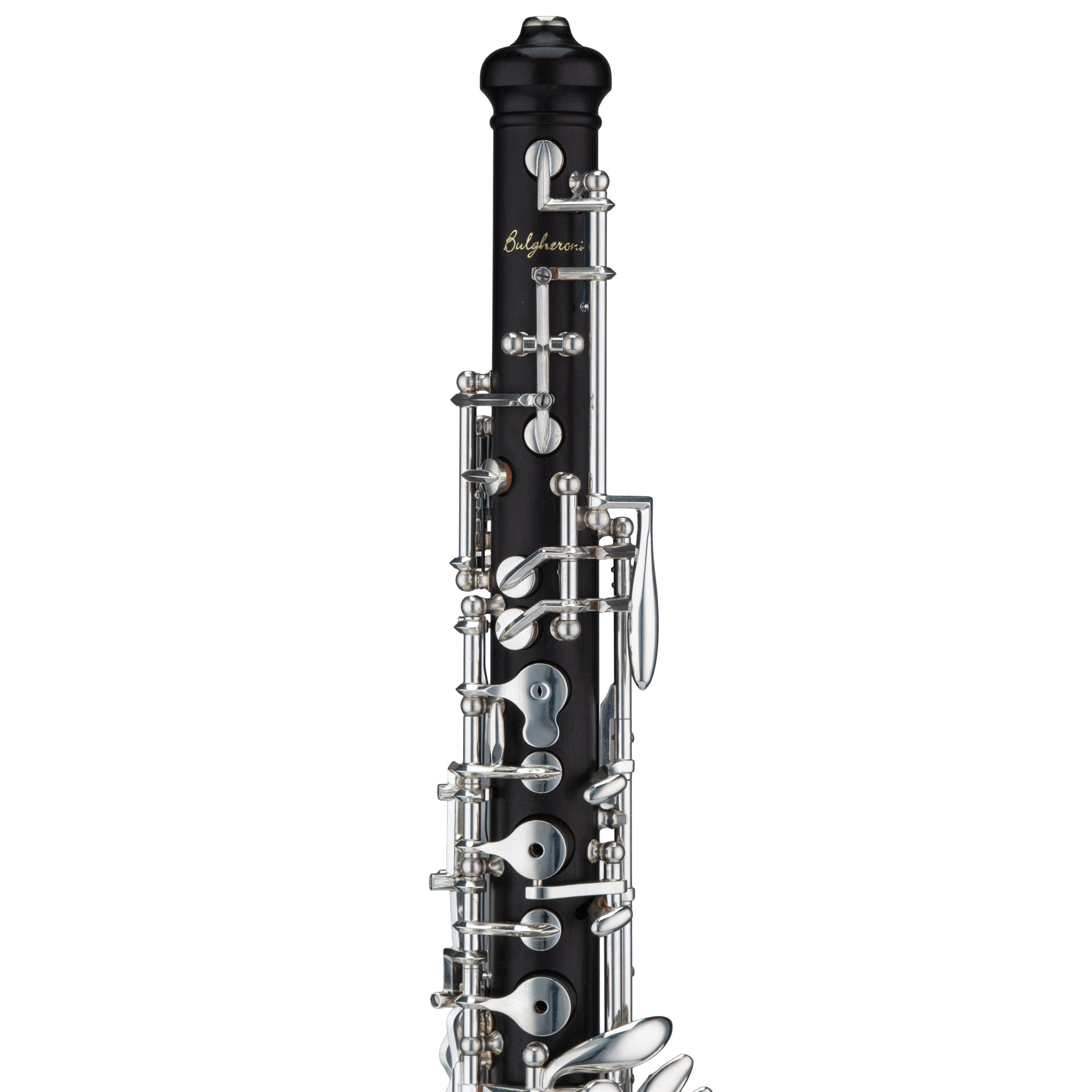 BULGHERONI FB - 101 - 3, Körper: Grenadillholz Klappen: Neusilber, starkversilberte Mechanik Halbautomatische Oktavklappe 3. Oktavklappe Doppelklappe Gis F-Klappe linke Hand Gabel F-Resonanzklappe Tiefe H-Cis Verbindung Tief B-Resonanzklappe mit Koffer und Überzug Die Oboe FB - 101 eignet sich ideal für die Studienjahre an der Musikhochschule und ist mechanisch gesehen ein vollständiges Instrument, das den Studenten technisch auf das professionelle Instrument vorbereitet. Studenten und Amateure schätzen die ausgewogene weiche Intonation und die präzise Ansprache. Die hochwertigen Materialien und die peinliche Sorgfalt in kleinsten Details bieten bei diesem Instrument die Möglichkeit zu einer hohen musikalischen Entwicklung.