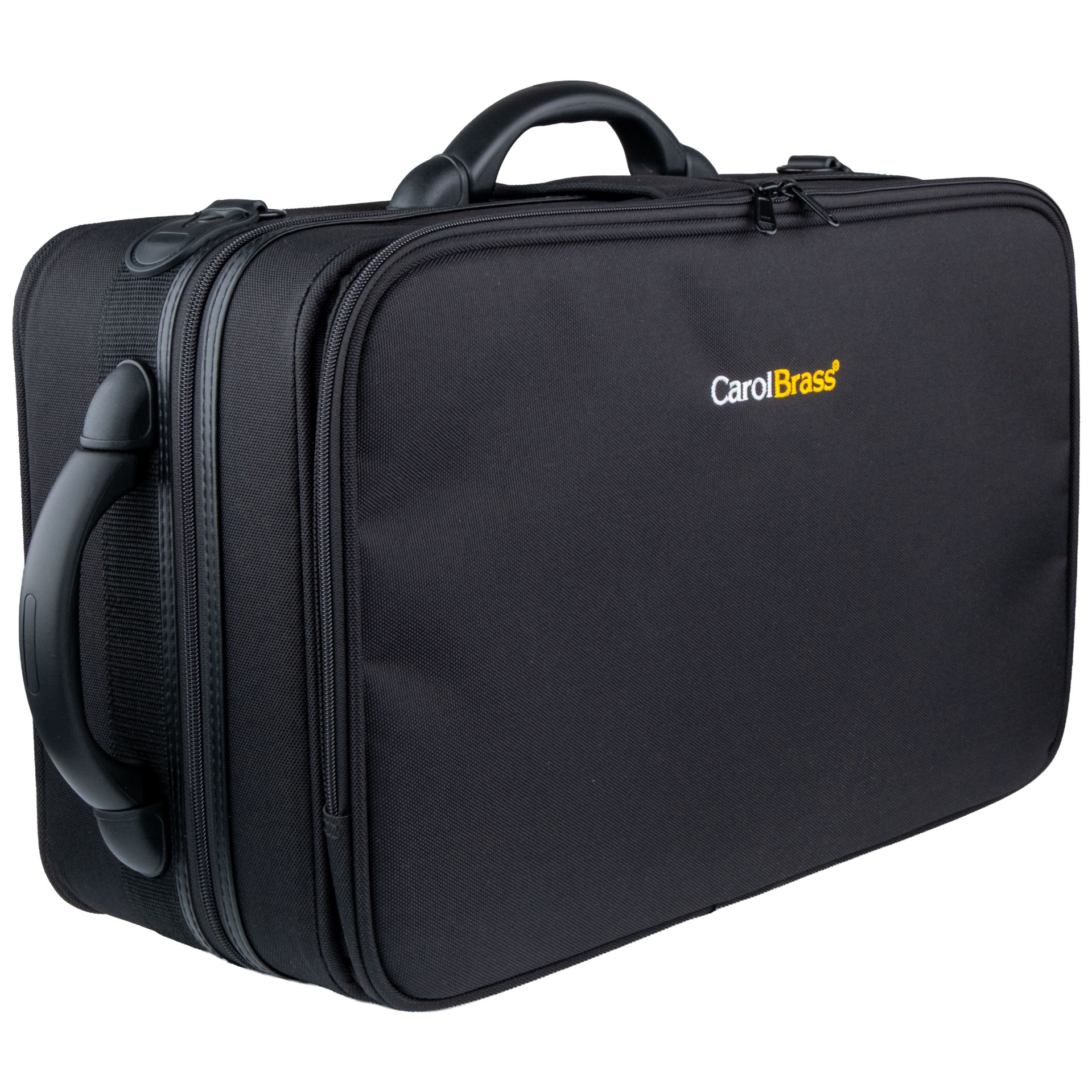 CAROL BRASS-Bb-Flügelhorn CFL-6200GL (Euro-Bell), Bohrung: 11.00mm, Schallbecher: Goldmessing, gebogen im -Euro-Style-, Durchmesser 152mm, Mundrohr: Gelbes Messing, Innenzüge: Gelbmessing / Außenzüge Neusilber, Trigger am 3. Zug, Lackiert, inkl. Etui.