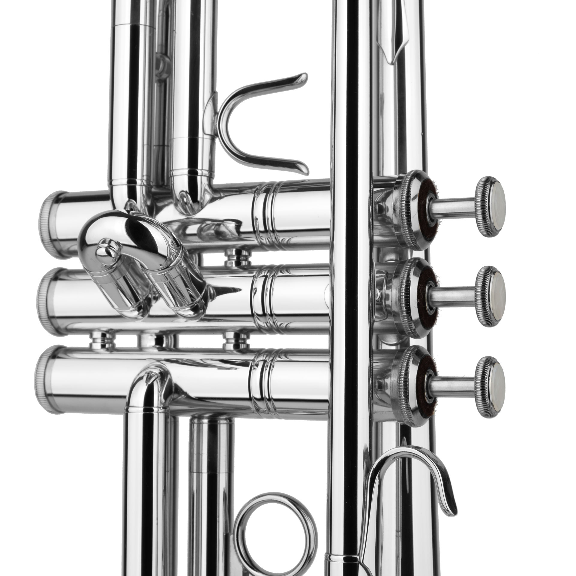 CAROL BRASS Bb-Trompete CTR2050H-YSS-Bb-S, Bohrung: ML 11,7mm, Schallstück: Standard-Gelbmessing, Durchmesser 123mm, Mundrohr: Goldmessing, Innenzüge: Gelbmessing / Außenzüge Gelbmessing, 1. Stimmzug Daumenhaken, 3. Zug verstellbarer Fingerring mit Stopper, versilbert, inkl. Etui.