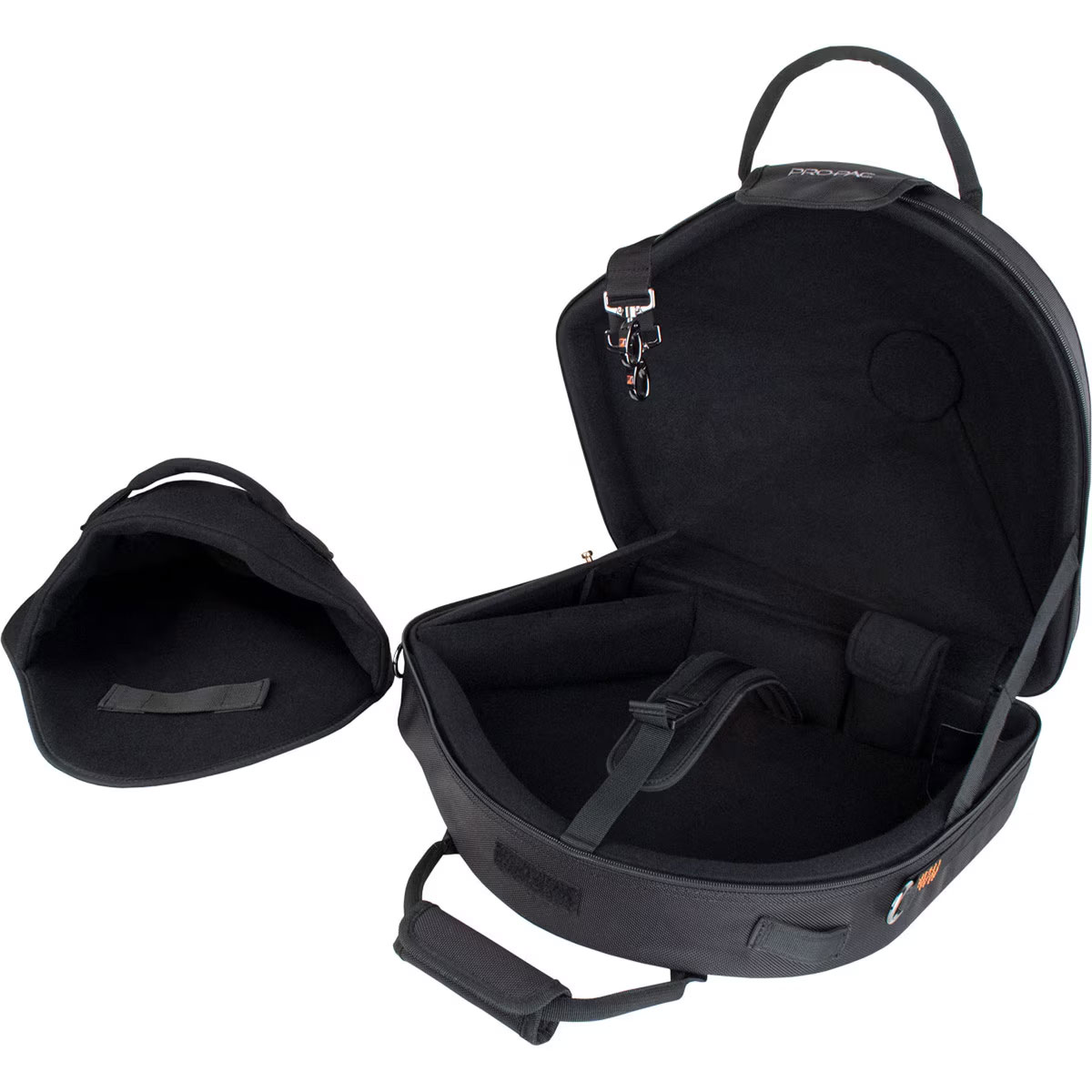 PRO TEC-Case für Waldhorn mit abnehmbarem Becher IP 316 SB, schwarz, extrem stabiles Case, mit Tragegriff, Schultergurt, große Außentasche für Noten, kleine Außentasche für Zubehör, mit Rucksackriemen nachrüstbar