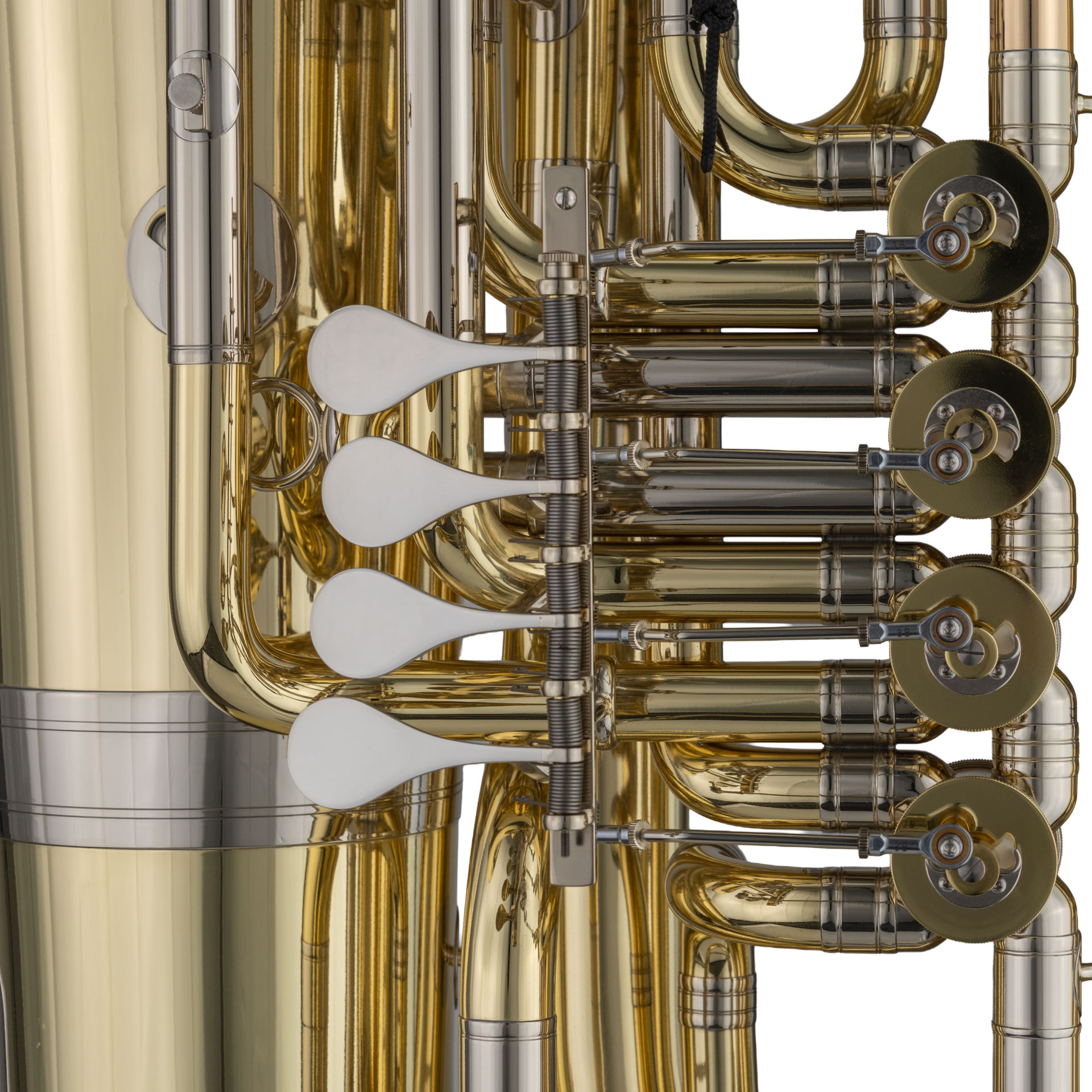 MELTON-Bb-Tuba 195 - Fafner - Spezial, Sonderausführung: Schnurstopper am 1. + 4. Ventil, 1. + 4. Ventil gebohrt, Schall 48 cm, 5/4 Größe, 4 Zylinderventile, Bohrung 21,5 mm, Höhe 105 cm, Mundstück, orig. Melton / Meinl-Weston Gigbag mit Rucksacktragegurten und Zubehörfach. Alle Melton / Meinl-Weston Tuben mit Zylinderventilen sind mit 3B Gelenksystemen und Innen- und Außenzügen aus Neusilber ausgestattet Mit dem Modell -Fafner- Nr. 195 setzt Melton einen neuen Standard im Bereich der Orchesterinstrumente. Bereits in den 60er Jahren gelang dies mit dem bekannten 4/4 B-Tuba-Modell Nr. 25, welches so häufig vom Wettbewerb im Baukonzept und Design nachgeschaffen wurde. Jetzt schickt sich das neue 5/4 B-Tuba-Modell von Wenzel Meinl erneut an, richtungsweisend auf den Markt zu treten. Ein Instrument mit völlig neuer Konzeption, gänzlich neuen Zuschnitten und einer neuen Schallstückform. Über ein Jahr haben die Profimusiker des Melton Tuba Quartetts dieses Modell in ihren Orchestern und Einsätzen -im Feld- getestet, den Handwerkern bei Wenzel Meinl den Segen und dem Modell 195 den Titel -Fafner- - angelehnt an Wagners Ring, gegeben. Die Instrumente aus dem Hause Melton/Meinl-Weston setzen seit Jahren immer wieder neue Maßstäbe im Blechblasinstrumentenbau. Aus gutem Grund. Denn seit sieben Generationen strebt die Meinl-Langhammer-Familie stets danach, die besten Erfahrungen im Herstellungsprozess zu erlangen, sich eine hohe Handfertigkeit anzueignen und dauerhaft an der Entwicklung der Instrumente zu arbeiten. Ein hervorragendes Qualitätsniveau versteht sie dabei noch immer als persönliche Verpflichtung.