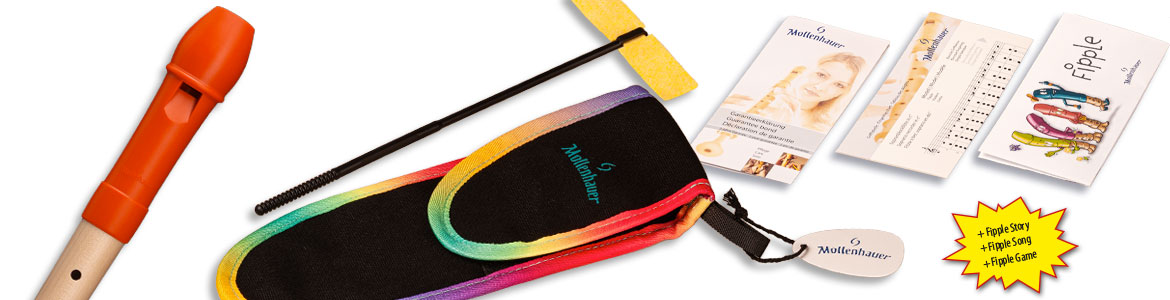 MOLLENHAUER Fipple - Digi - Sopran, orange, Kunststoff/Ahorn, deutsche Griffweise mit Einzelloch. Die sympathische Sopranblockflöte mit farbigem Kopfstück aus Kunststoff in Orange und Griffstück aus europäischen Ahornholz. Die kindgerechte und hochwertige Materialkombination ist das bewährte Erfolgsrezept für einen guten Einstieg in die Musik. Unempfindlich, zuverlässig und wohltönend, bietet sie mit gebogenem Windkanal eine gute Ansprache im ganzen Tonumfang und eine ausgewogene Stimmung. Die elegante Linienführung des Flötenschnabels und die schwungvolle Gestaltung des Instruments eröffnen von Beginn an den Bezug zu barocken Vorbildern. Das Griffstück aus Holz mit von Hand bearbeiteter, geölter Oberfläche sorgt für eine angenehme Haptik sowie einen schönen Klang. Der Kunststoffkopf erleichtert die hygienische Pflege, indem er einfach mit lauwarmem Wasser durchgespült und außerhalb der Tasche getrocknet wird. Lernmotivierend Jedes Fipple-Modell ist mit einer Charakterfigur verbunden, mit der sich Kinder identifizieren können. Die orangene Digidora, impulsiv und mutig, ist eine verlässliche und mutige Freundin. Sie liebt alle klaren Töne. Die bunte Welt der Fipples beflügelt die Fantasie und fördert die Lernbereitschaft. Zusätzlich zum Instrument wird motivierendes, pädagogisches Begleitmaterial angeboten: die abenteuerliche Fipple Story zum Vorlesen oder Selbstlesen der lustige Fipple Song - kleine Musikübungen für den spielerischen Einstieg das Fipple Game - zum Selberbasteln für spannenden Spielespaß