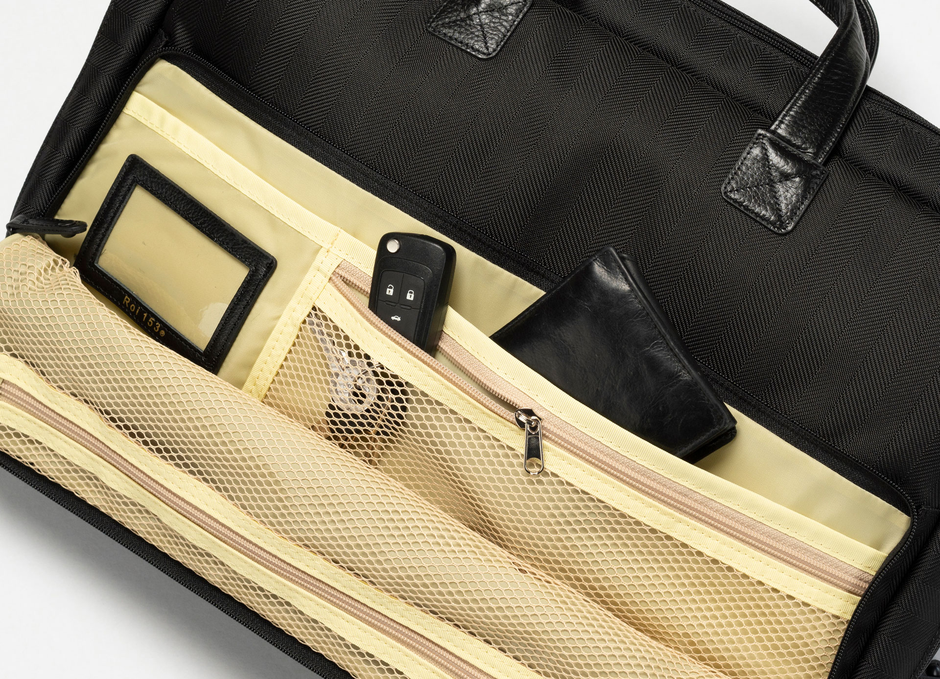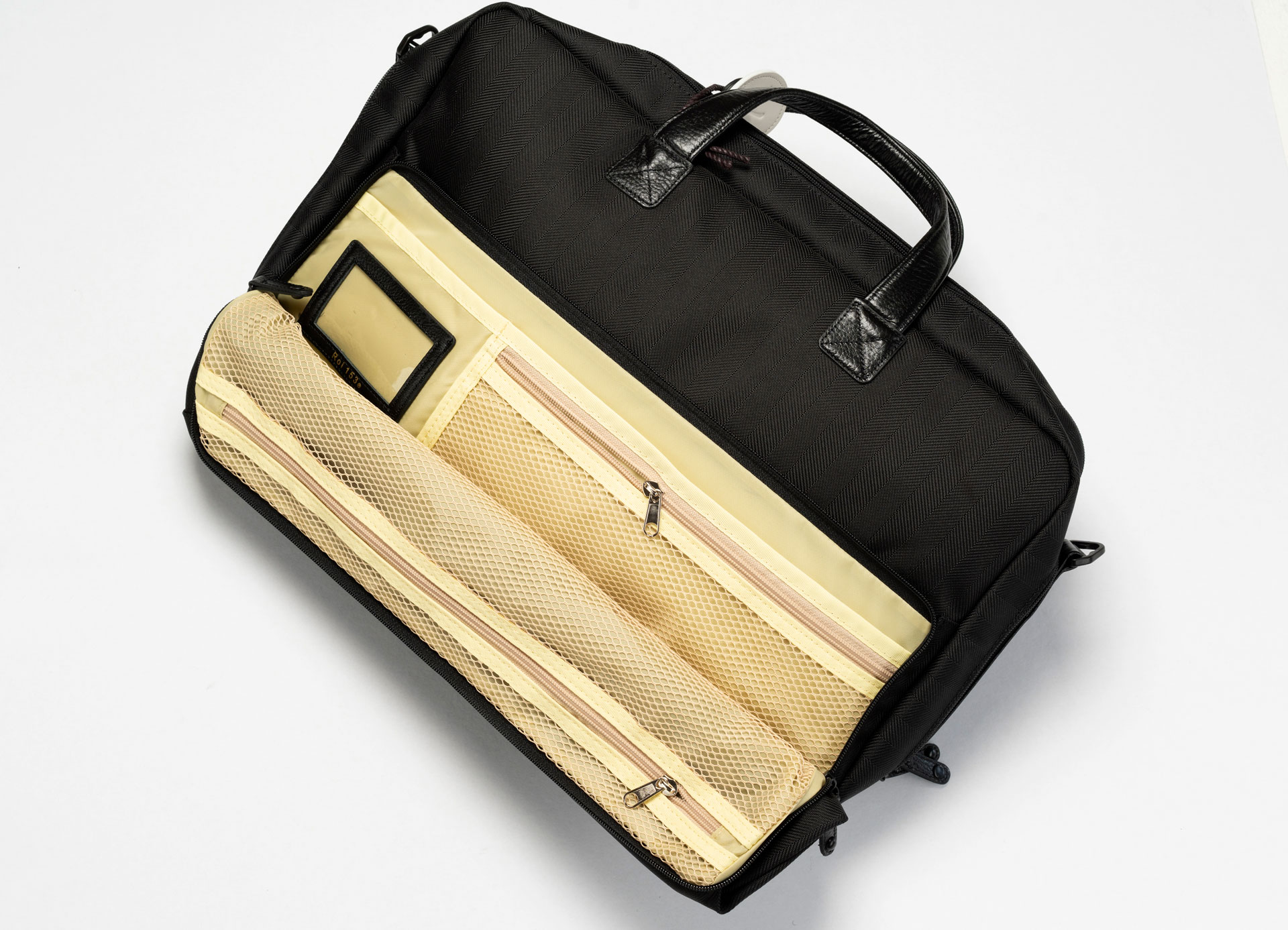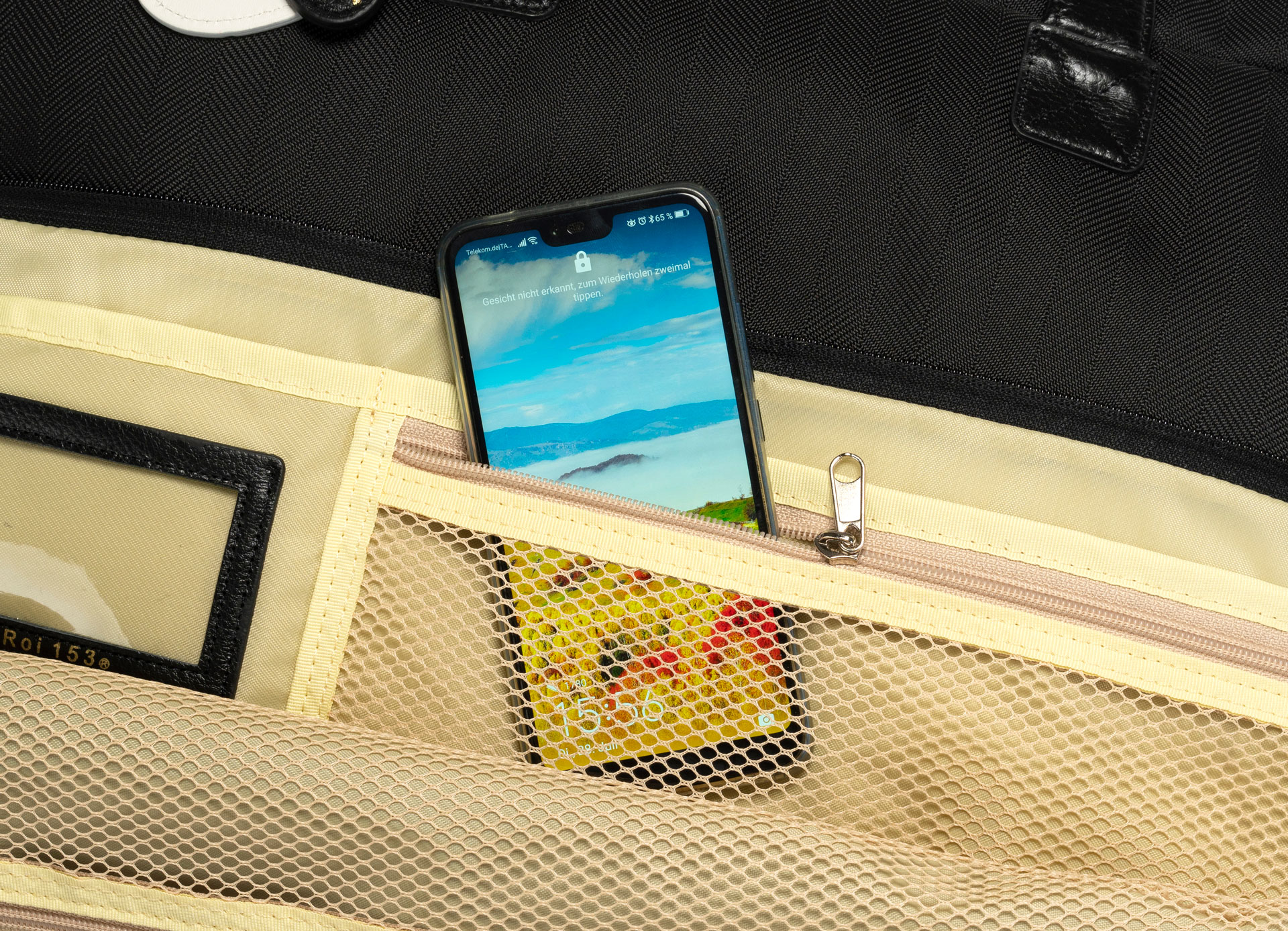- large exterior accessory compartment with mesh pockets for various accessories (External dimensions: 43 cm x 15 cm x 5 cm)