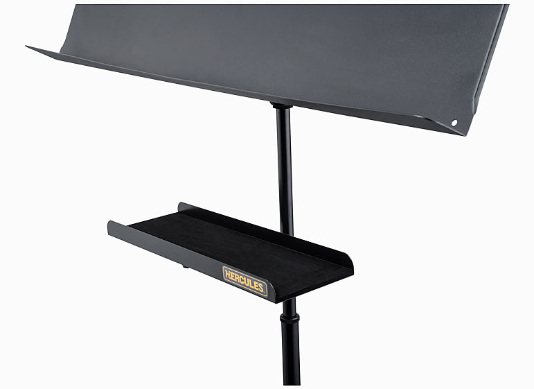 HERCULES Orchestra Conductor's Stand Set HCBS-429BP. With the Quick-N-EZ height adjustment and the EZ Angle Roller, quick one-handed adjustments of the stand are no problem. The extra-wide music stand and accessory tray provide ample space. It is easy to fold up and can be stored in the practical carrying bag. Orchestra conductor's podium: -Quik-N-EZ height adjustment -EZ Angle Roller-, height: 68 cm - 115 cm, weight: 4.1 kg, base radius: 34.5 cm, max. load: 5 kg, dimensions when folded: 86 cm x 15 cm x 40 cm, music rest: 80 cm x 36 cm, storage tray: weight: 0.85 kg, dimensions: 39 cm x 12 cm bag: 86 cm x 15 cm x 40 cm