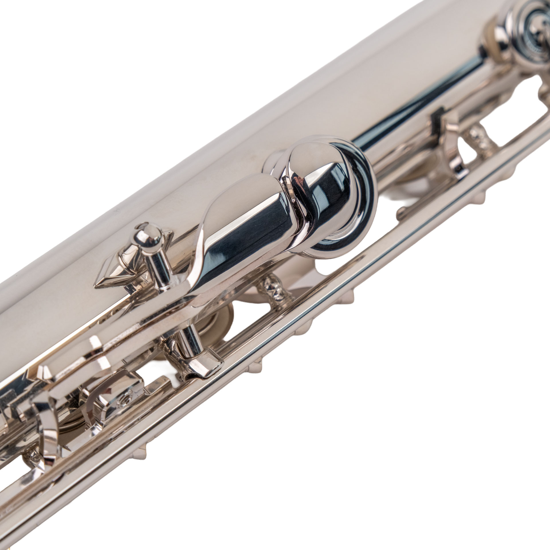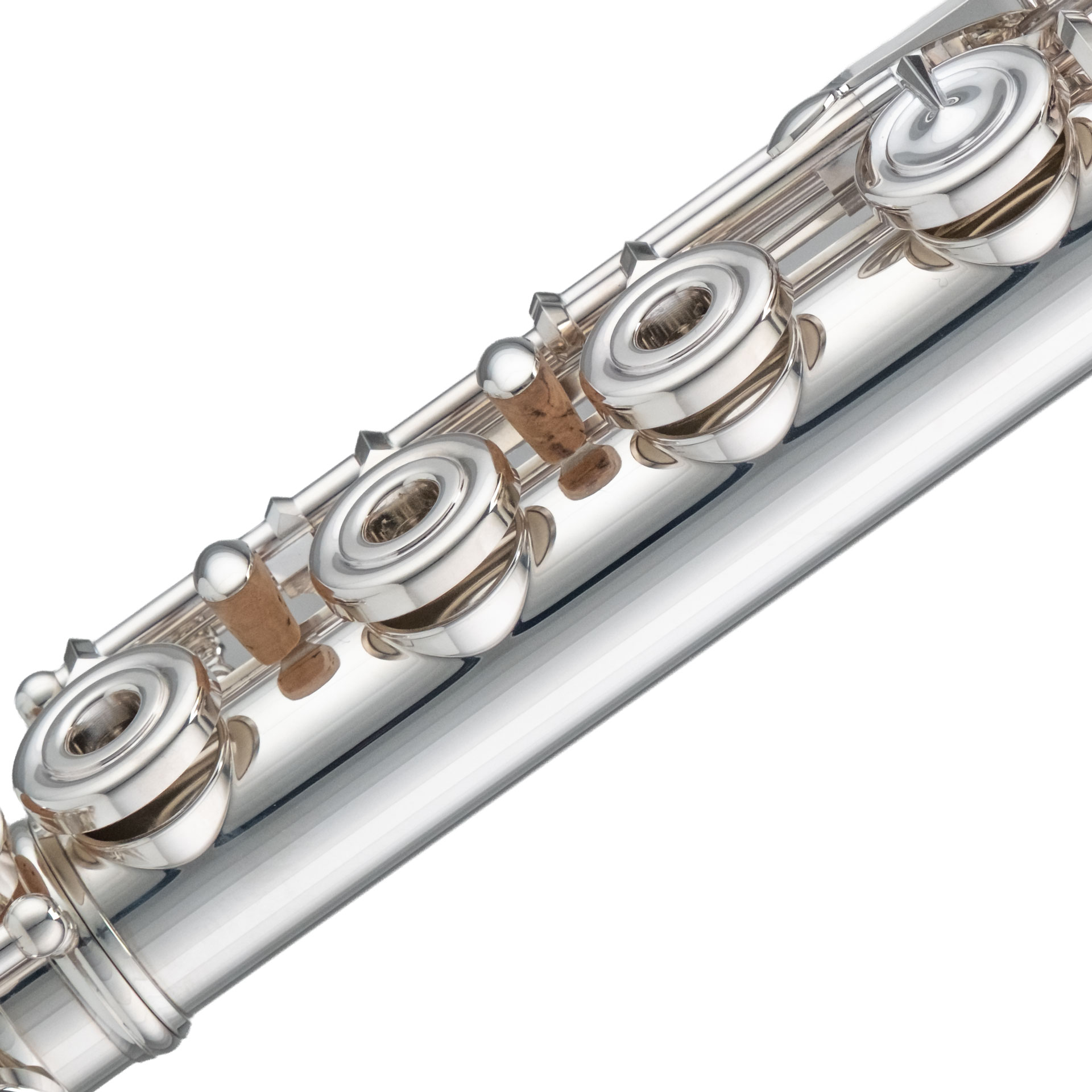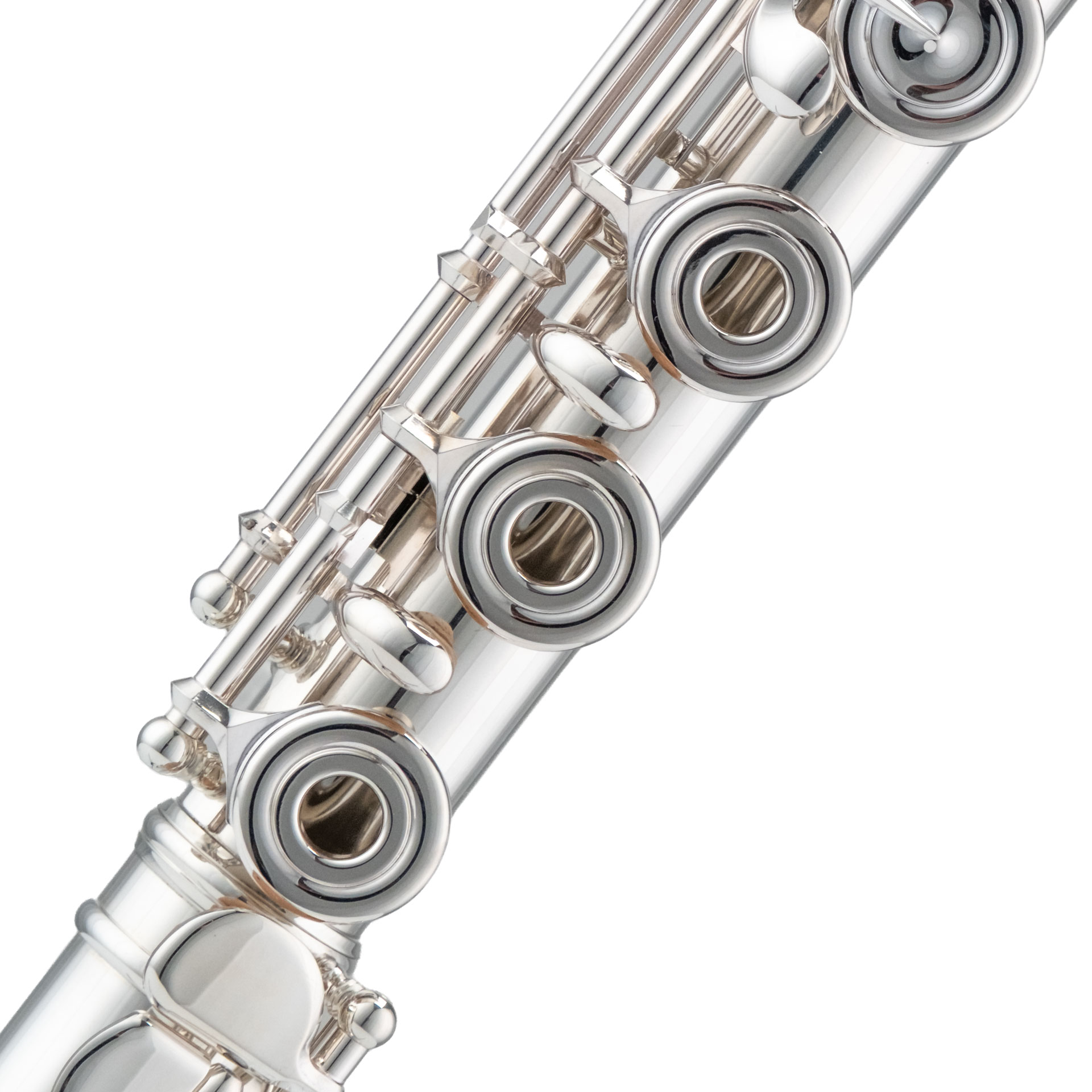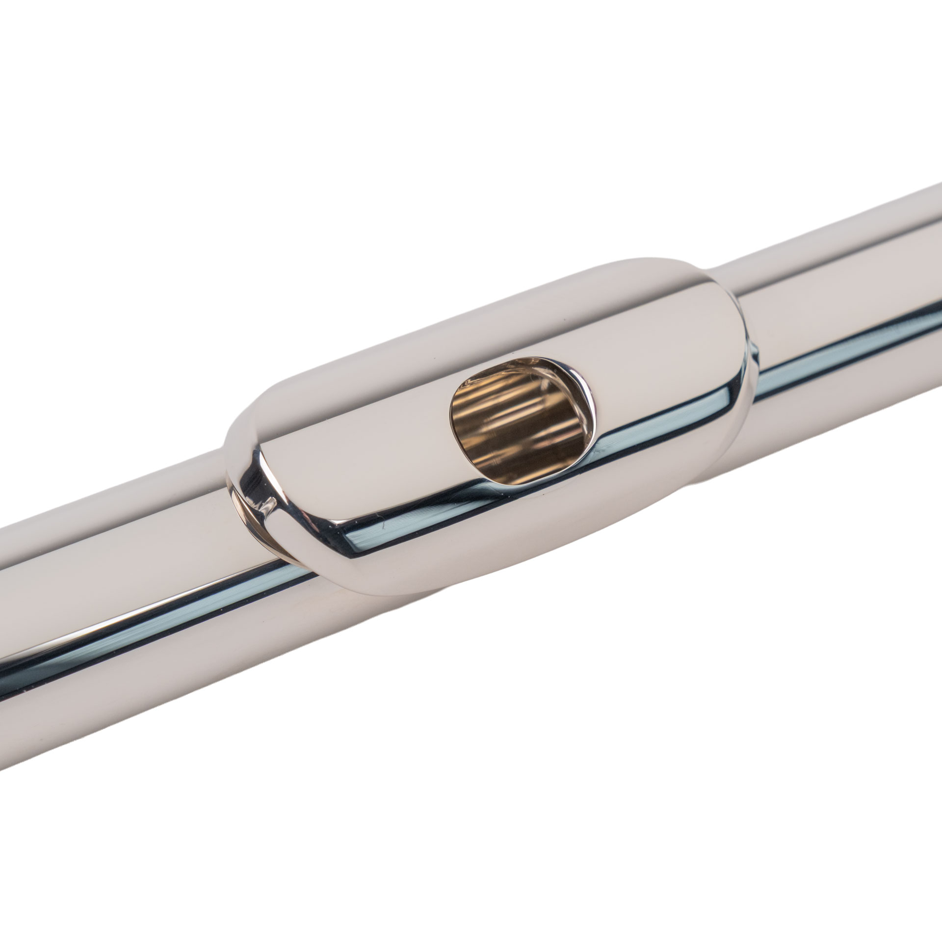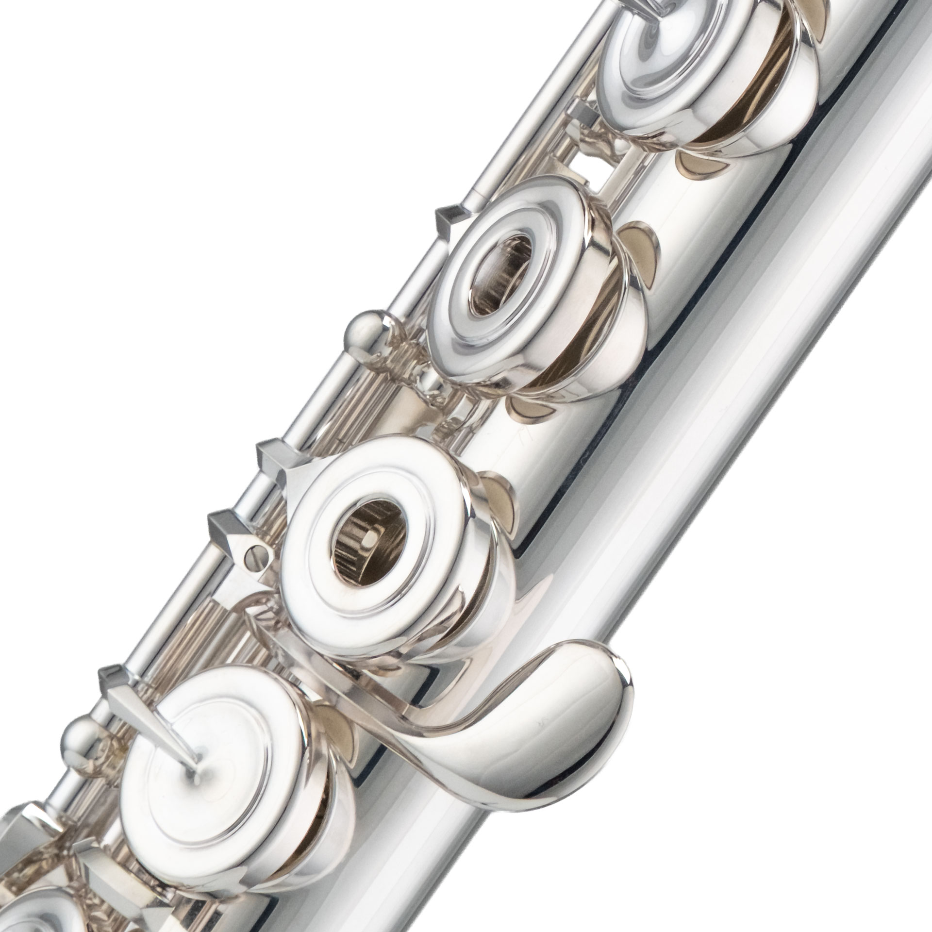 MIYAZAWA flute PB 402RE, ring keys, handmade flute with head, middle and foot joint made of solid sterling silver. Silver-plated mechanism. Drawn tone holes, stainless steel key springs, "partial Brögger" pinless mechanism for the keys