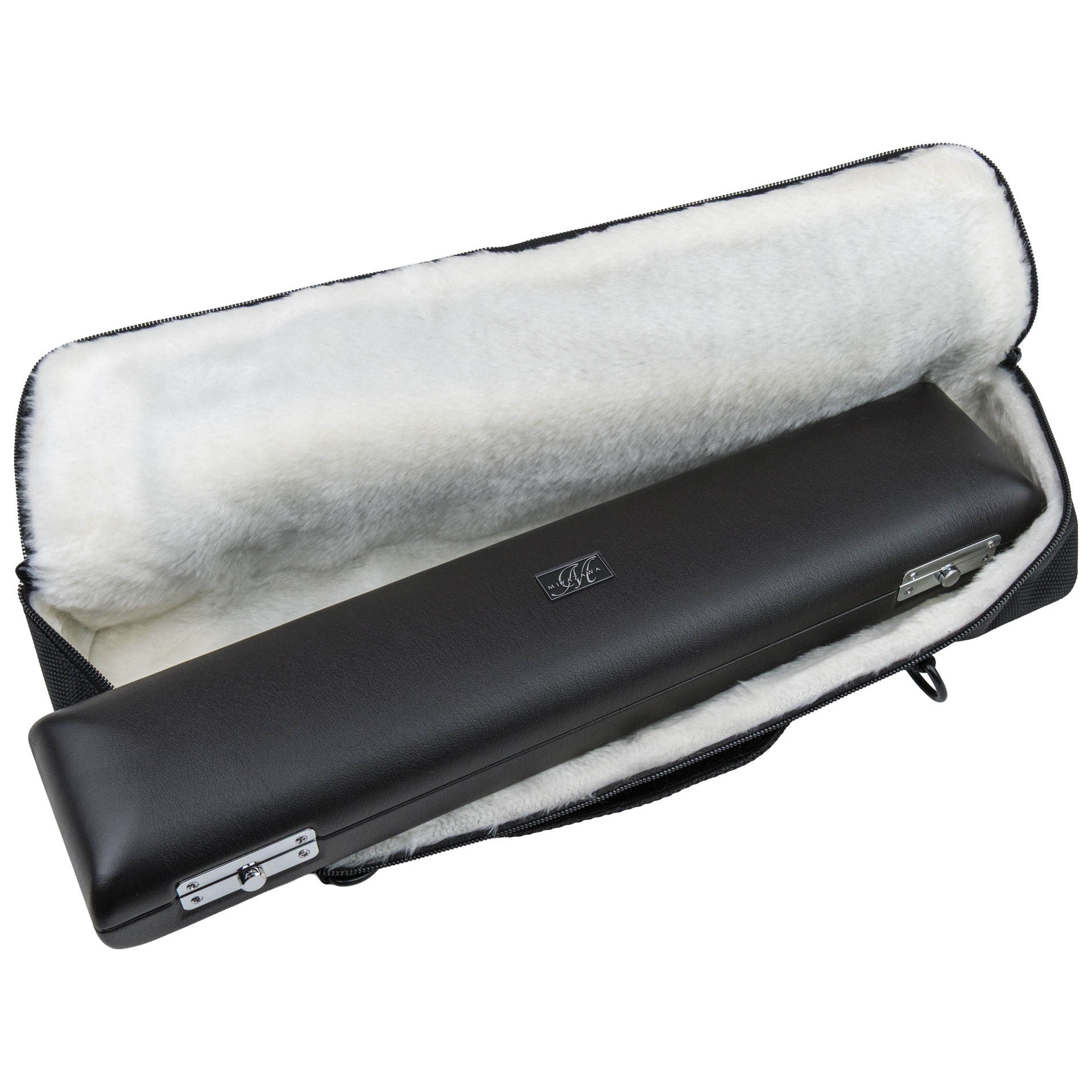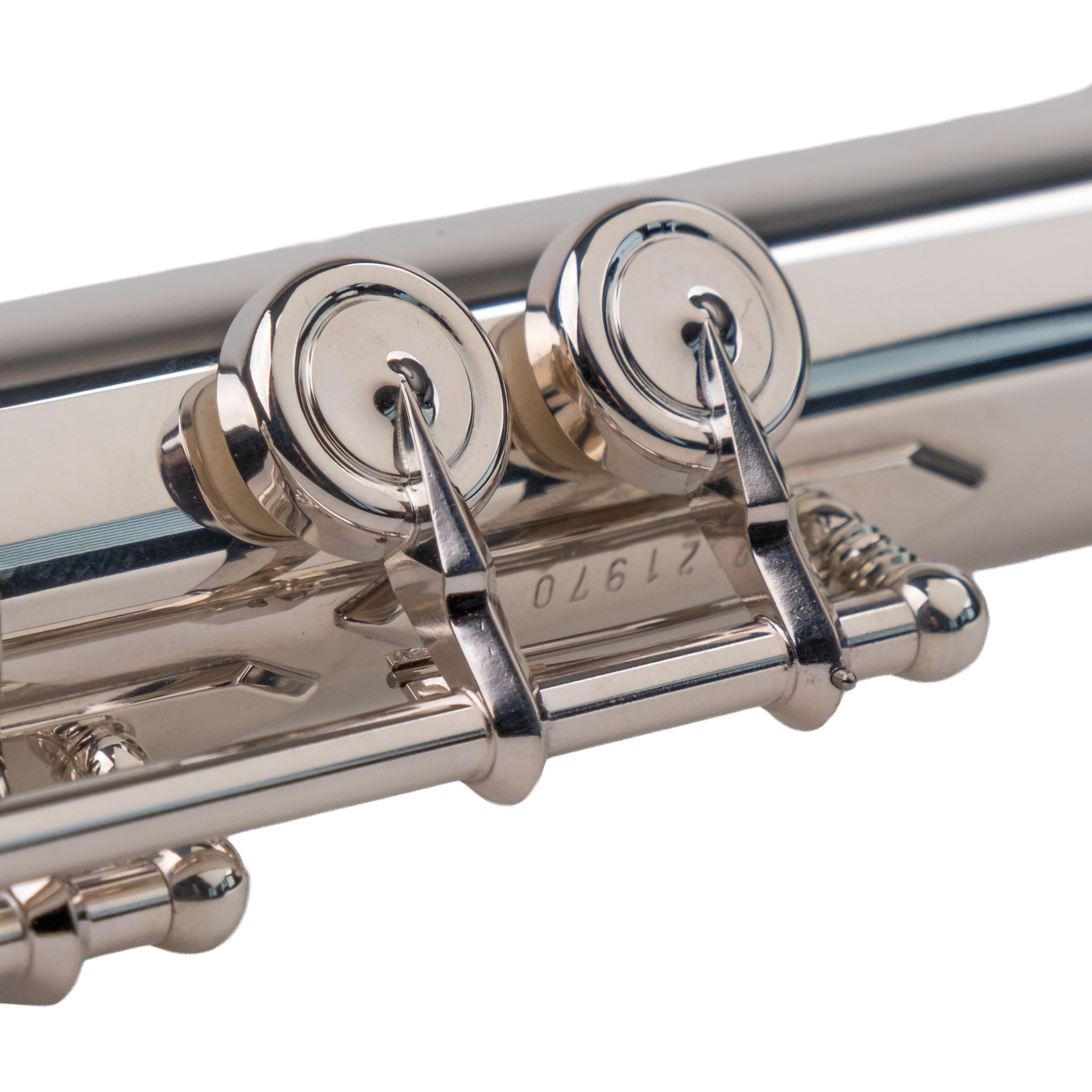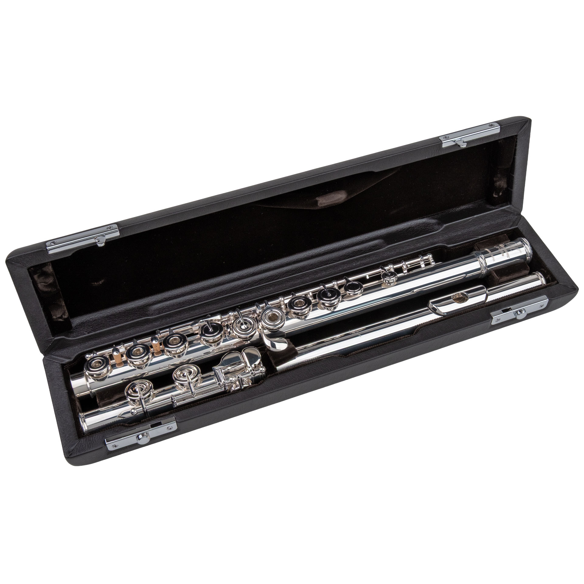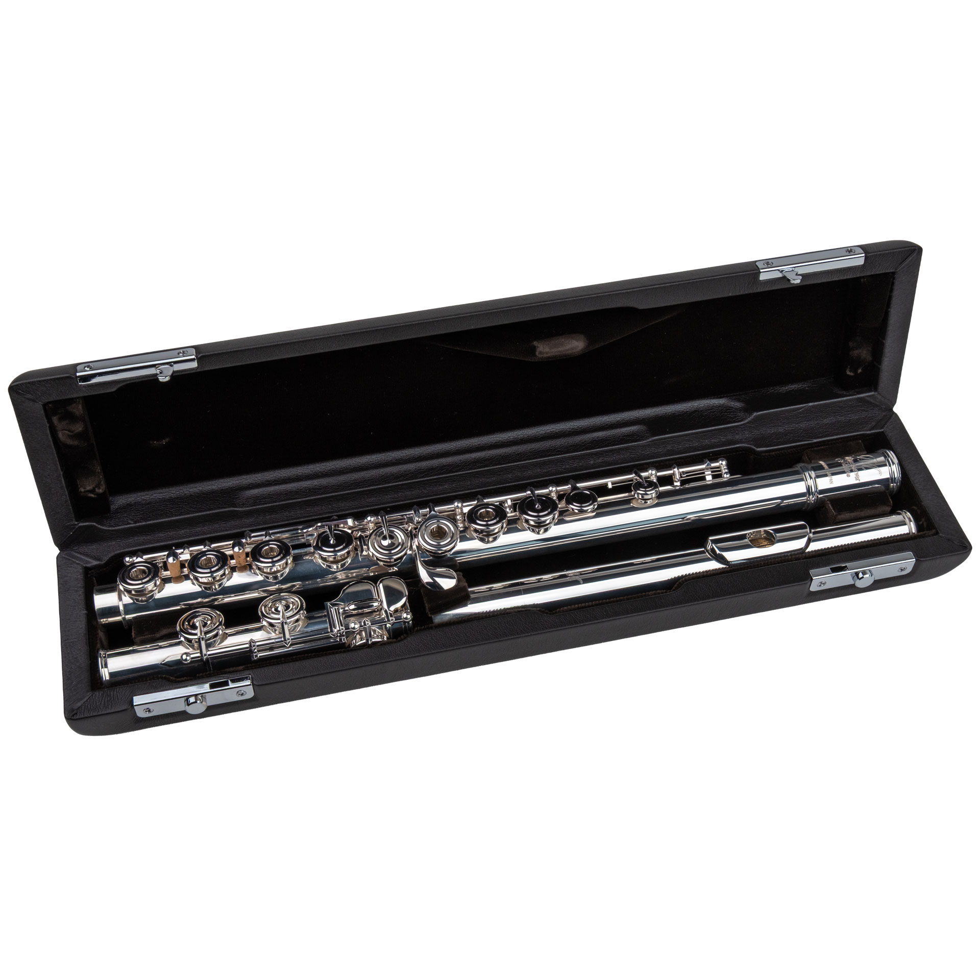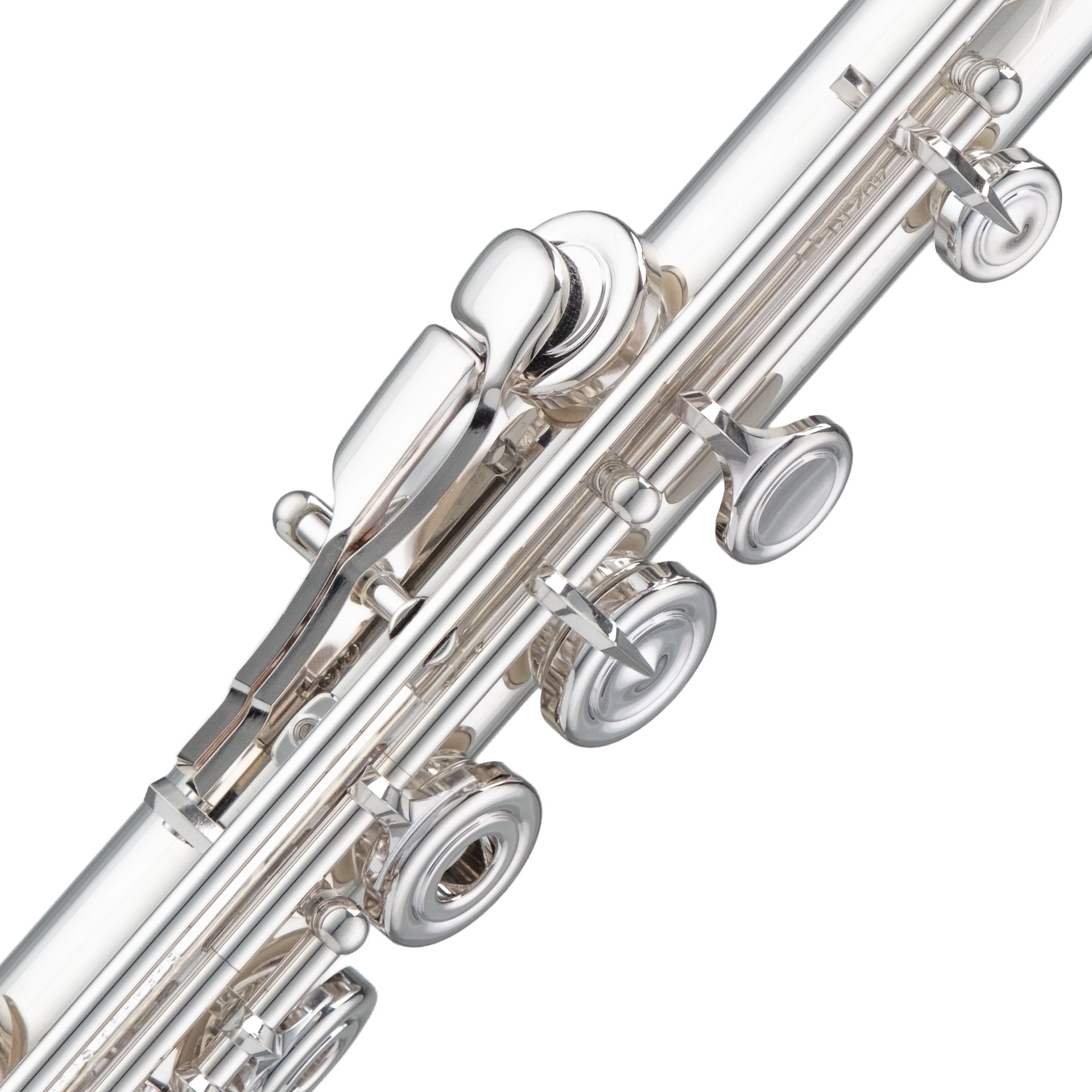 MIYAZAWA flute PB 402RE, ring keys, handmade flute with head, middle and foot joint made of solid sterling silver. Silver-plated mechanism. Drawn tone holes, stainless steel key springs, "partial Brögger" pinless mechanism for the keys
