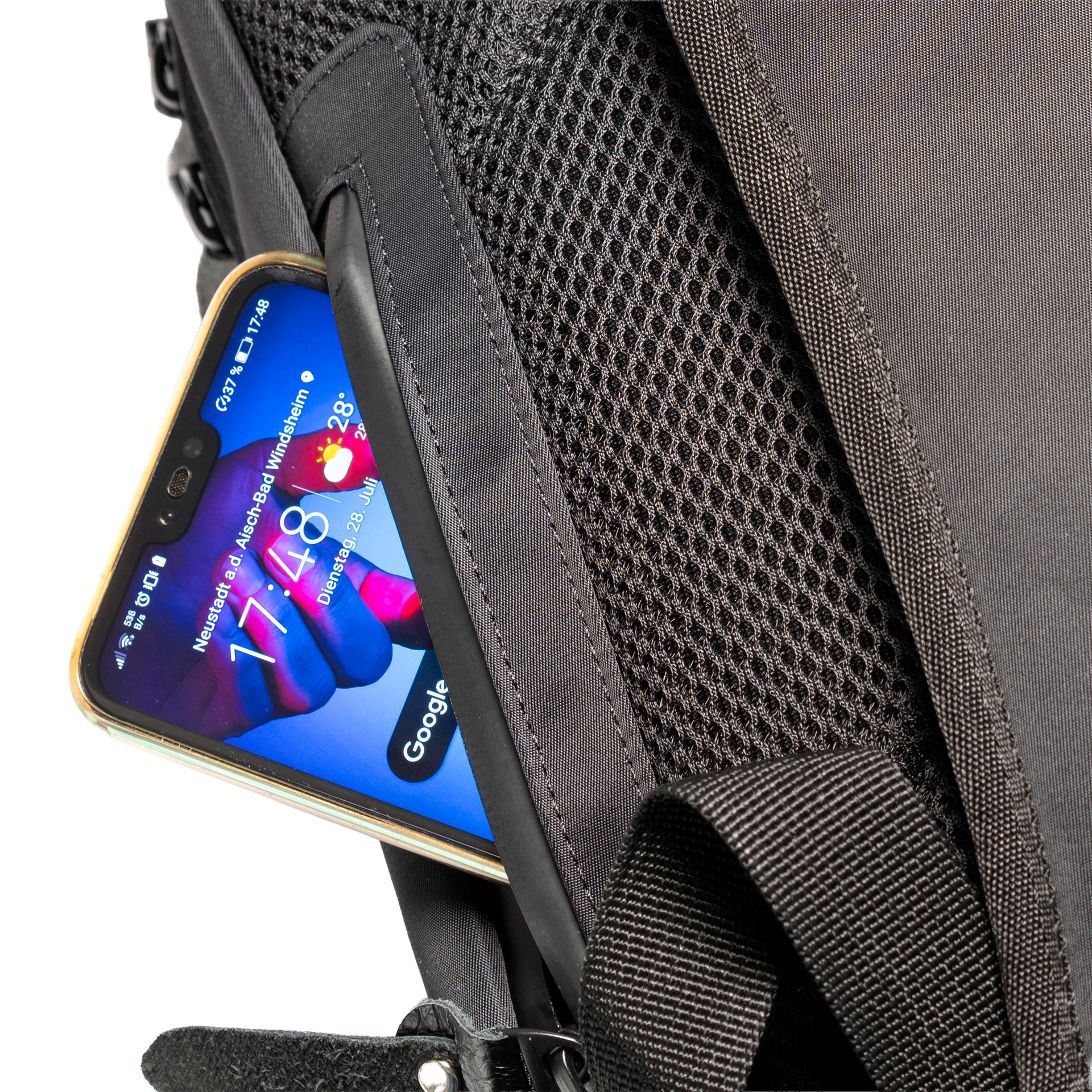 - small pocket in the backpack strap for credit card-sized cards