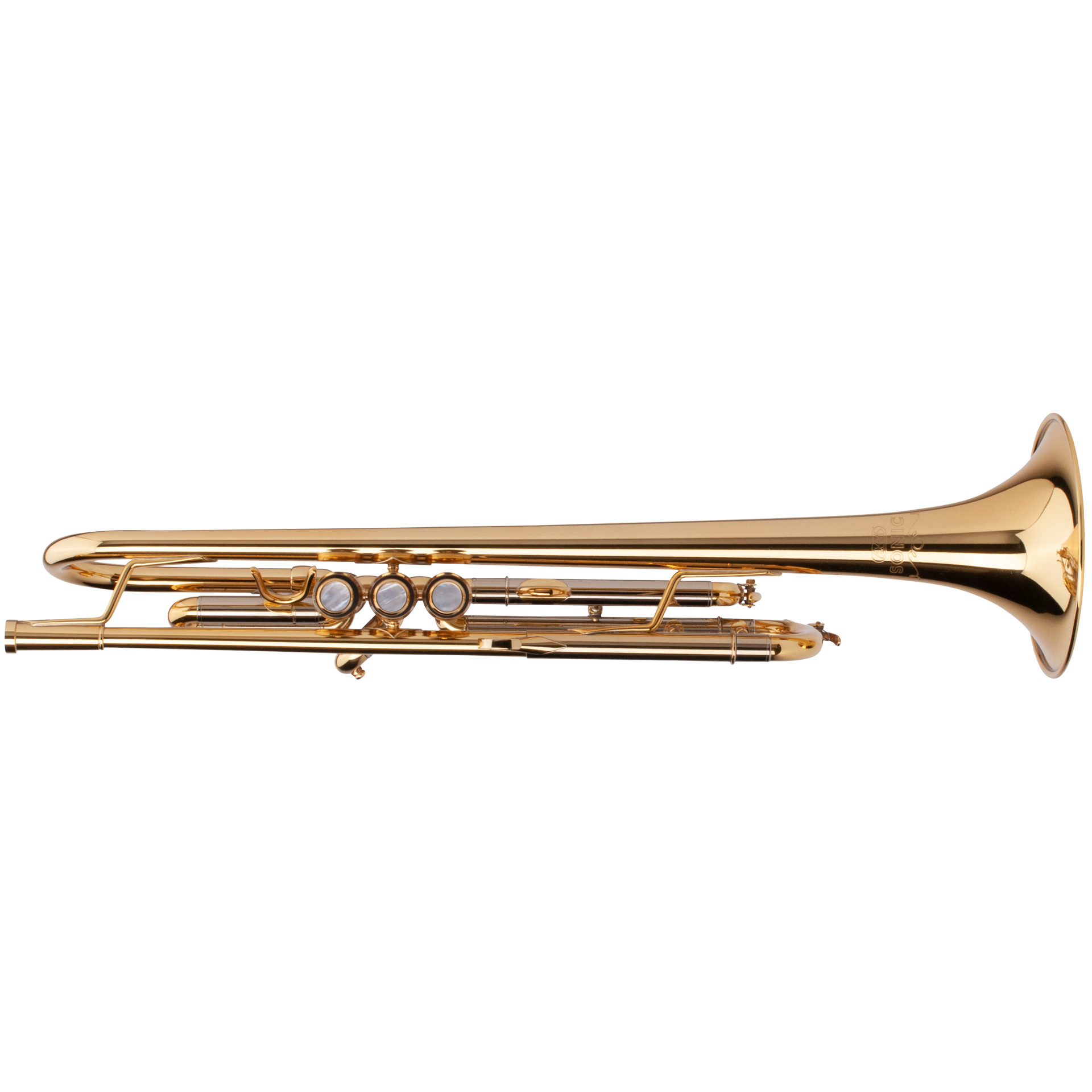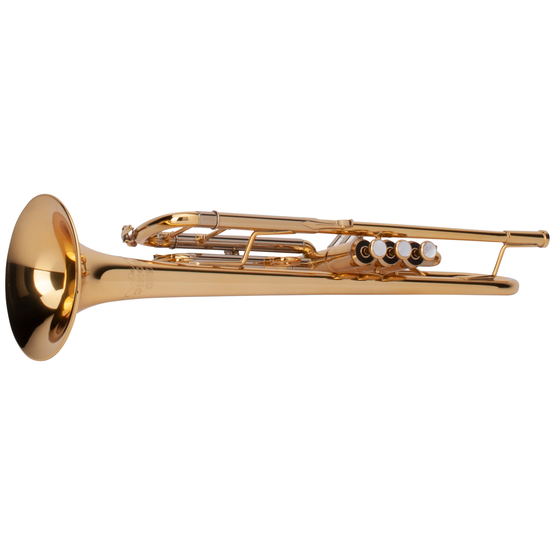 ADAMS trumpet -SONIC-, B-Stock with a little dent on the bell. The Adams Sonic trumpet is a wonderful horn for the player looking for a professional trumpet at an unbeatable price. We built a new bell and valve block for this model exclusively. The Sonic features a 124mm bell and nickel silver on the inner slides. The Sonic has no custom options and is offered in lacquered yellow brass and silver plate only. specifications bell: yellow brass - 124 mm bore: ML 11.7 mm finish: lacquered gauge: 0.50 Sonic series Adams Sonic Series instruments are the outcome of combining artisan craftmanship with advanced manufacturing technology. The instruments are intensively play-tested by professionals to meet the standards of advanced level players and professionals. The entire line of Sonic instruments offer great projection and subtle control in every dynamic and range.
