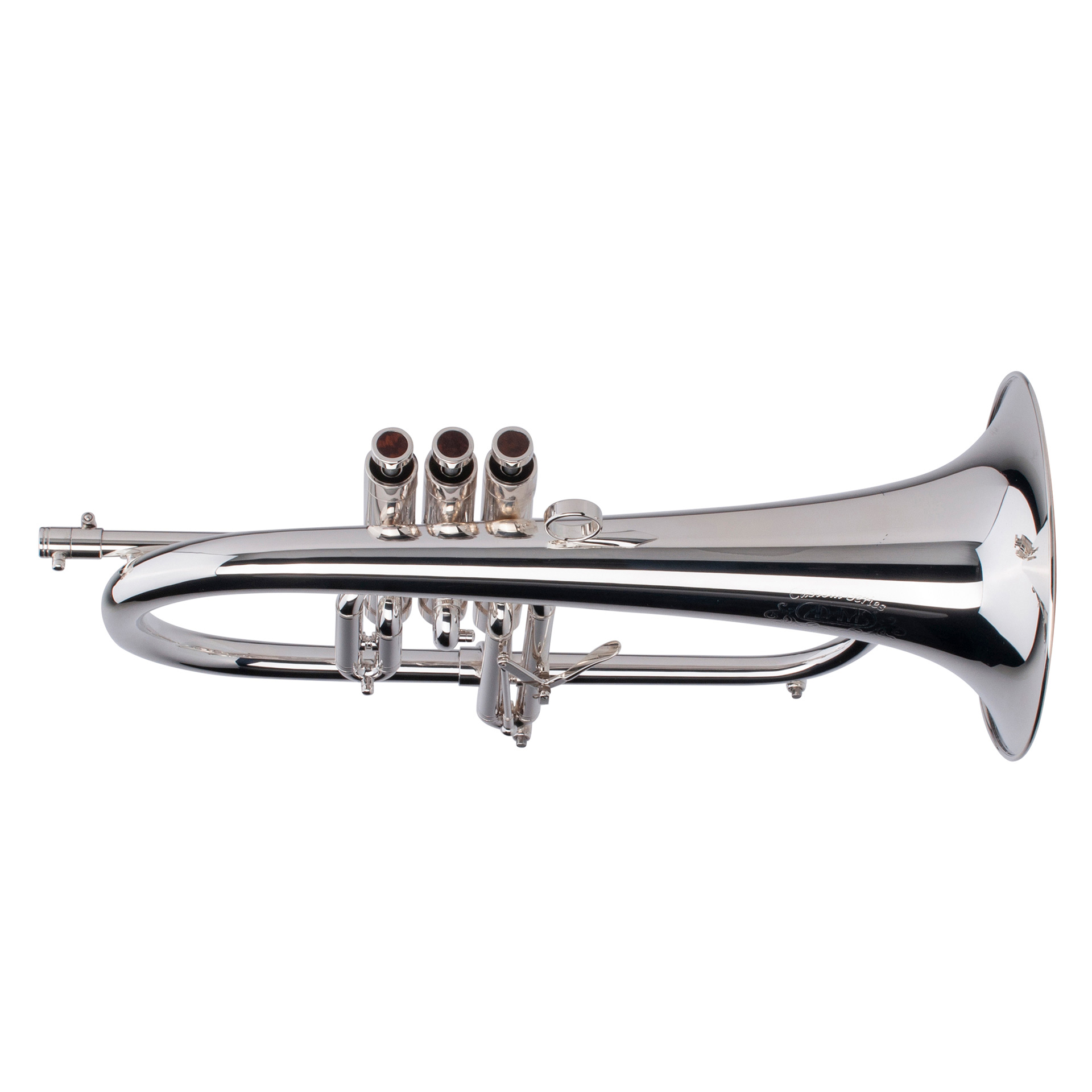 ADAMS Flugelhorn F3 silver plated, Custom Series, tuning: Bb, bell: 0.50 mm brass, one-piece, hand-hammered from sheet metal, diameter: 170 mm, bore: ML 10.5 mm, finish: matt gold lacquered, leadpipe: No. 2 (0.402) and No. 3 (0.413), valve block: nickel silver caps with, brass body (heavy), valves: 3 x top center stainless steel, trigger: Am 3. Trigger: On 3rd slide, Valve lever: Brass, Wood inlays (Honduras rosewood), Water key: Amado, Gig bag: Included (Adams/Gard), Accessories: Valve oil, slide grease, trigger oil, cleaning cloth, Special feature: All conical parts hand-hammered from sheet metal. The Adams F3 flugelhorn has the F2 valve block (heavier bronze). The bell has a slightly larger diameter than the F2 (slightly more than 170 mm) and also a larger bell neck. The branch is wound a little tighter and you will notice that there is no bracing between the branch and the bell, which provides more resonance. The soldered bell guide gives the sound an extra core. This is the darkest grand we make and has a velvety, chocolatey, rich sound. It has amazing tone quality and is easy to play. Translated with DeepL.com (free version)