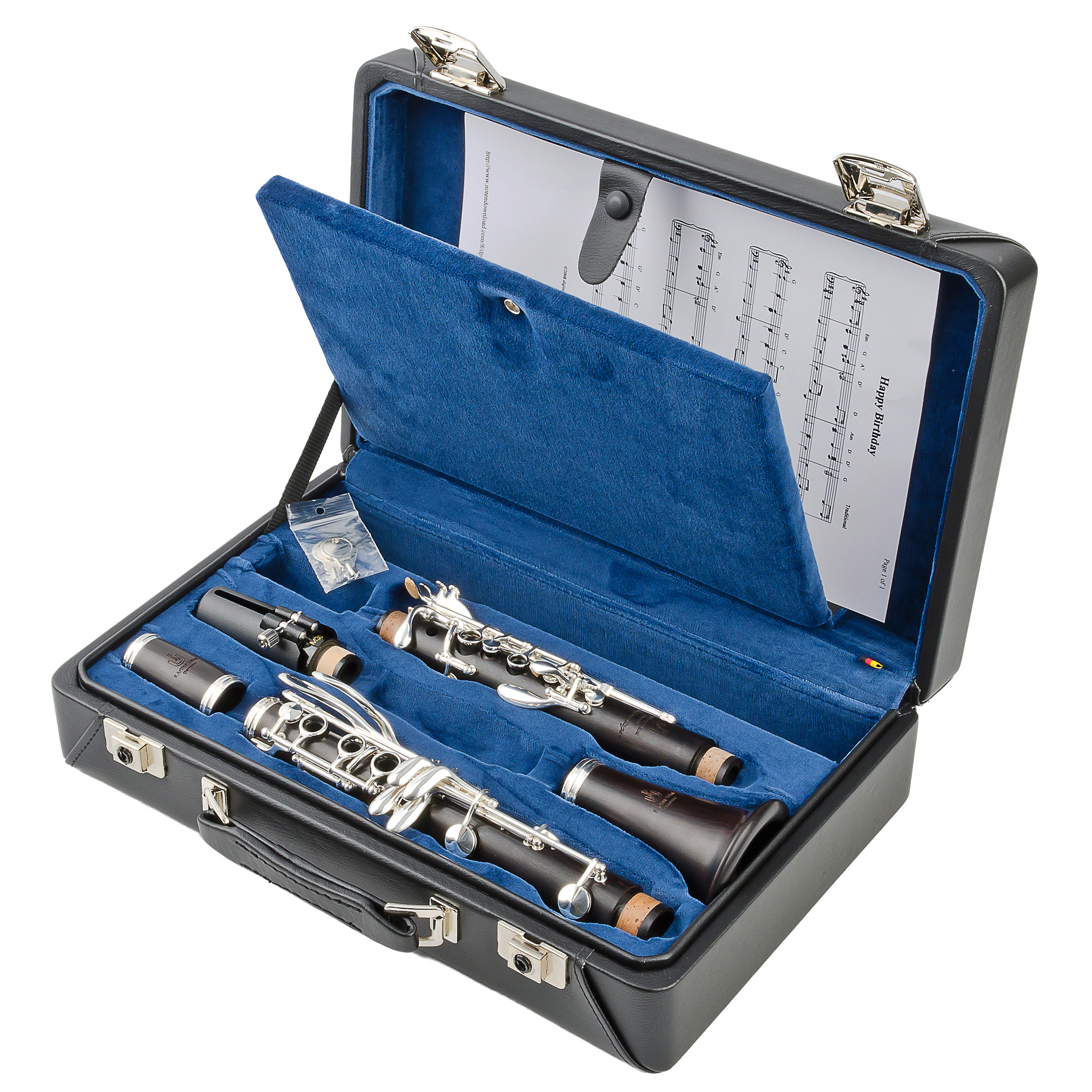 UEBEL-Bb-Clarinet Advantage-L Boehm, Grenadilla wood, 18 keys and 6 rings, adjustable thumbrest, silver plated keys, leatherpads, with mouthpiece, ligature and light case.