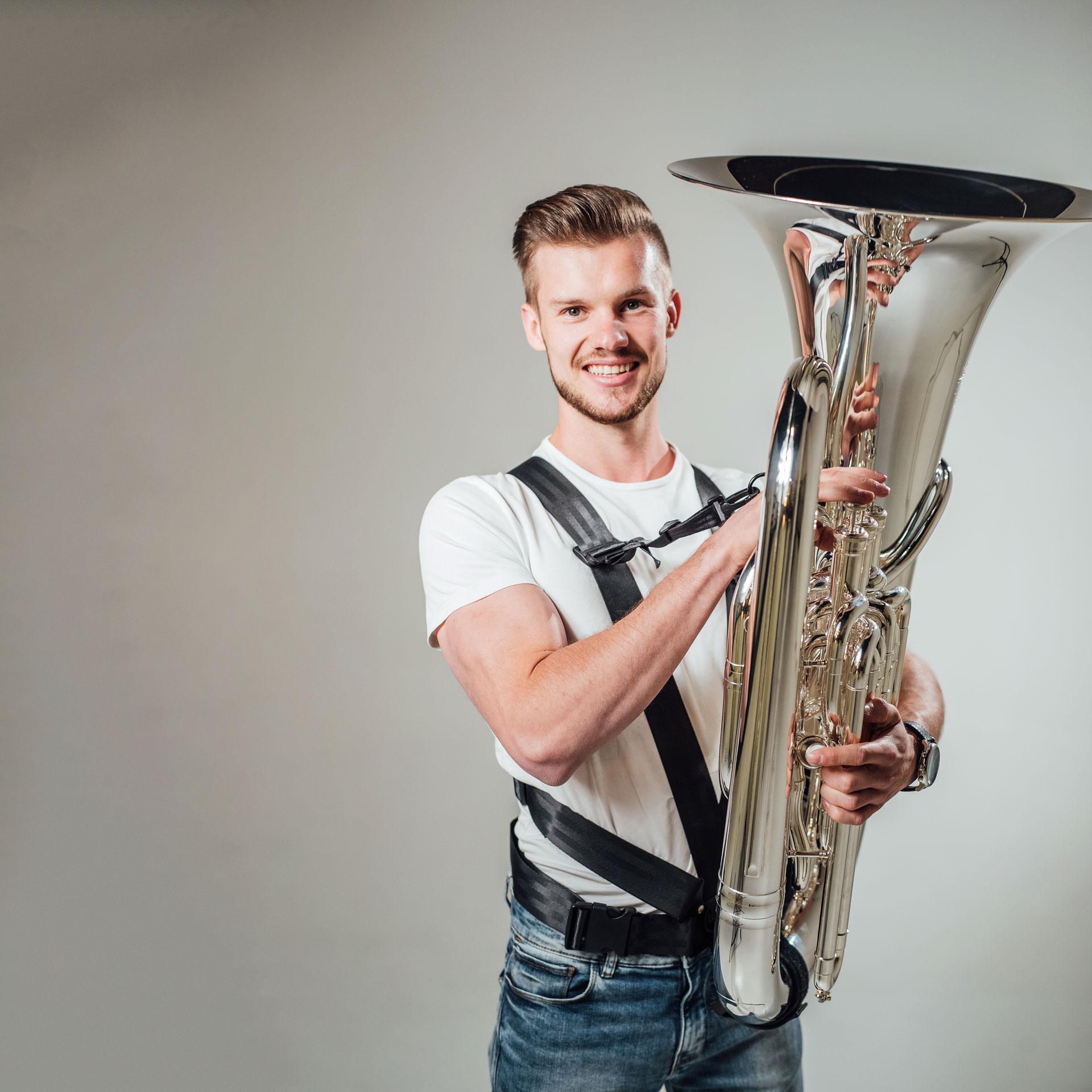 LUGO Holding Strap Max M, for easy hooking and unhooking of the tuba in the LUGO Bassbelt PRO. The holding strap Max is attached to the large body arch with a Velcro fastener, simple and non-slip. The position of the tuba can be varied and optimally adjusted by moving it. Size M, for F, Eb uns smaller Bb-tubas.