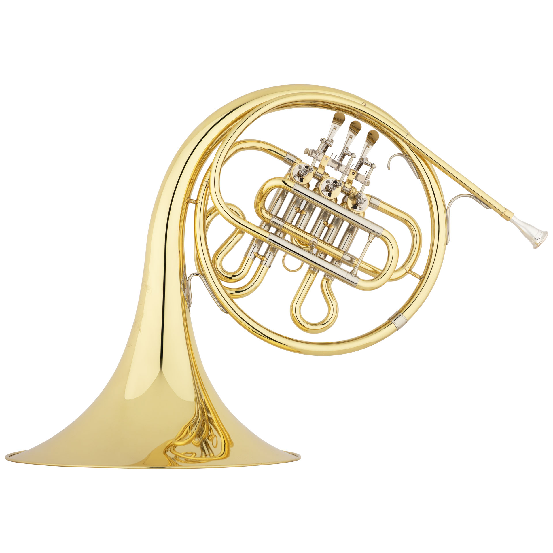 SHIRES Bb French Horn SHRA121, key: Bb, 3 Rotax valves, bore: 11.9 mm (0.468 in), handspun brass bell, Ø: 210 mm (12,2 inch), lacquer finish, mouthpiece, Ultra-Pure care kit, and deluxe case with backpack straps.