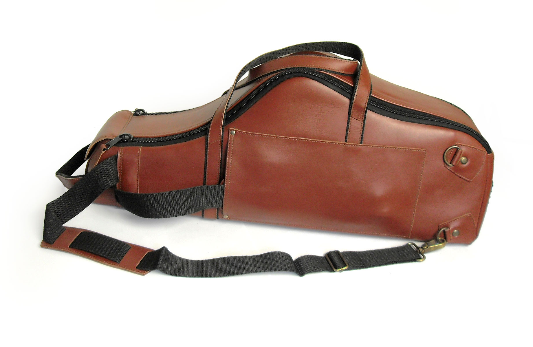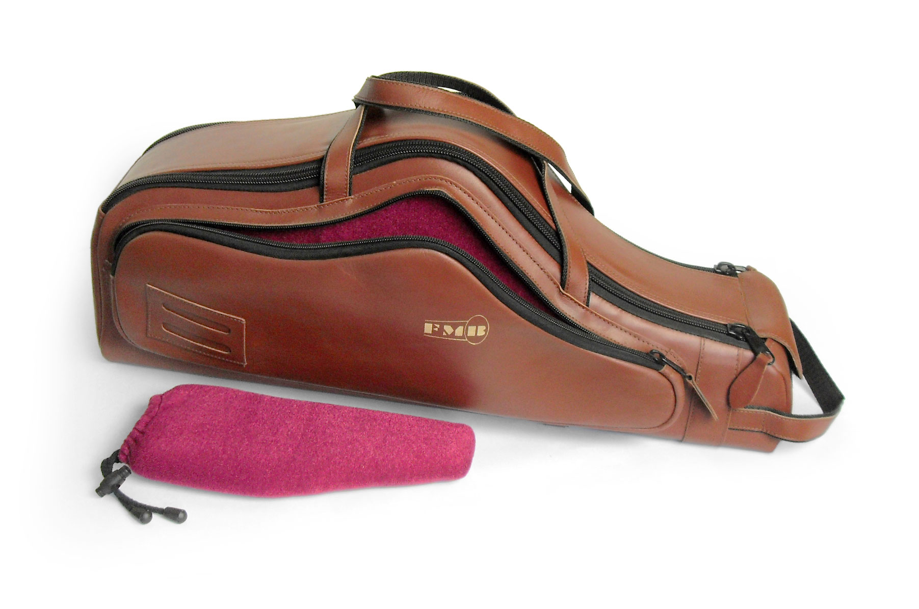 FMB Bag Altsaxophon -extra protection- Leder, braun, große robuste Reißverschlüsse, eine Außentasche mit Reißverschluss, Ledergriffe, verstellbare Schultergurte FMB-Gigbags zeichnen sich durch eine einmalige Polsterung aus. Hierdurch wird das Instrument, insbesondere im Bereich des Schallbechers und die besonders gegen Druck empfindlichen Klappen hevorragend geschützt.