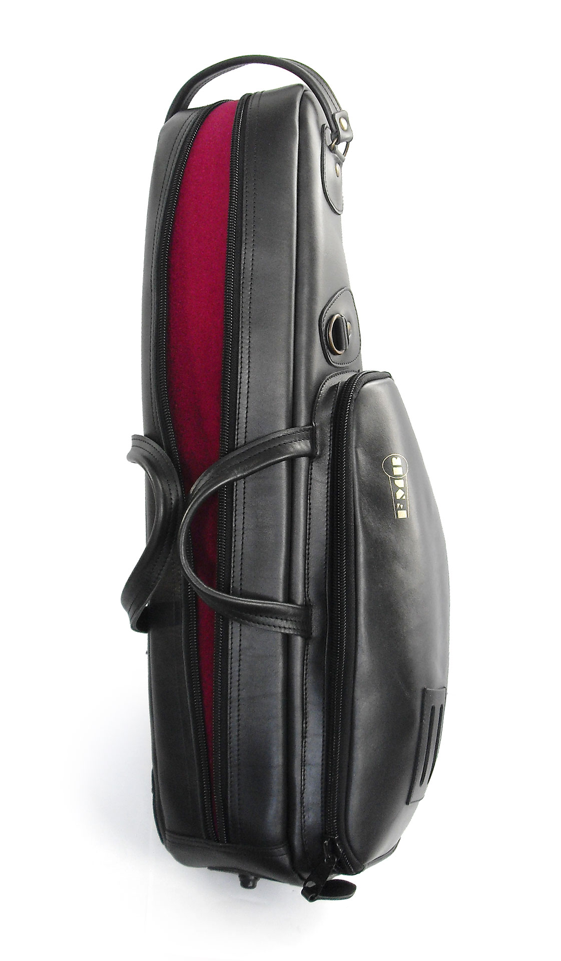 FMB Bag Altsaxophon Leder, schwarz, große robuste Reißverschlüsse, eine Außentasche mit Reißverschluss, Ledergriffe, verstellbare Schultergurte FMB-Gigbags zeichnen sich durch eine einmalige Polsterung aus. Hierdurch wird das Instrument, insbesondere im Bereich des Schallbechers und die besonders gegen Druck empfindlichen Klappen hevorragend geschützt.