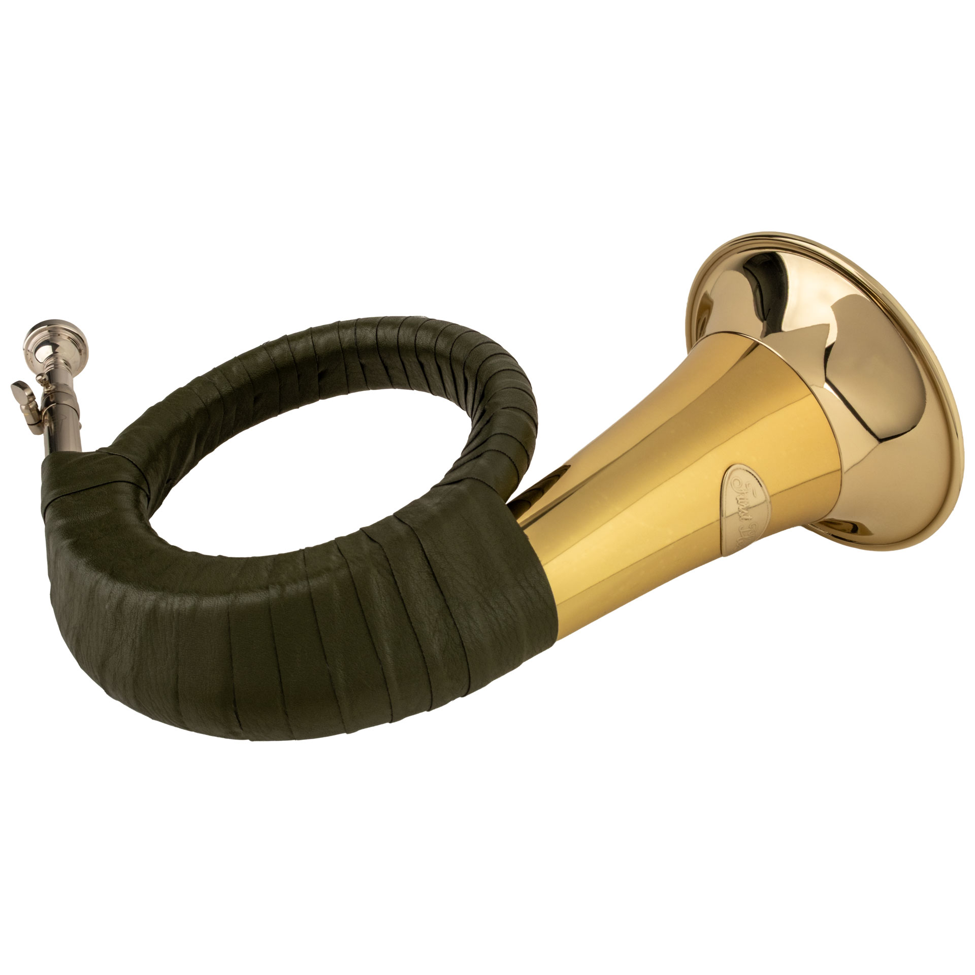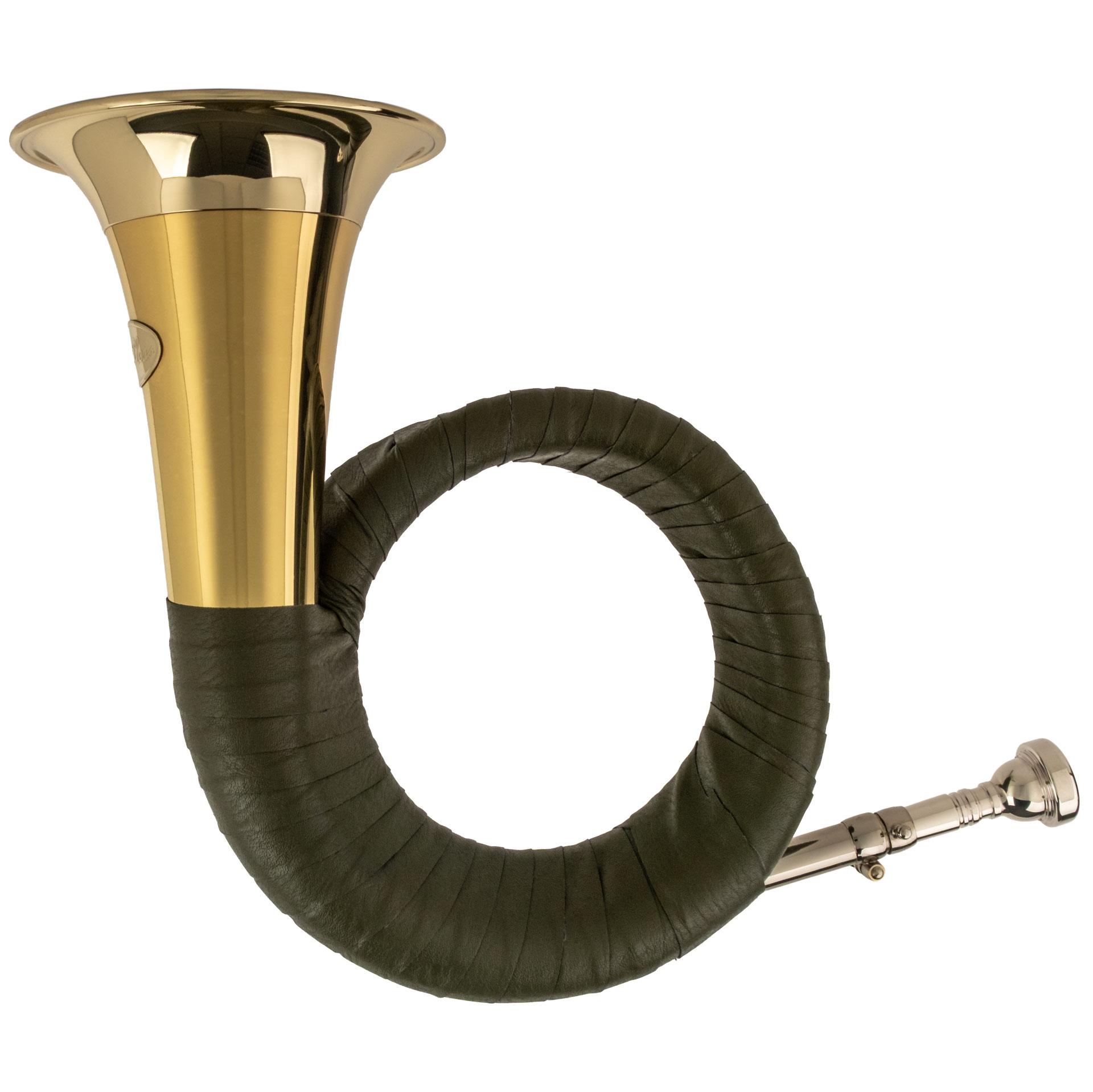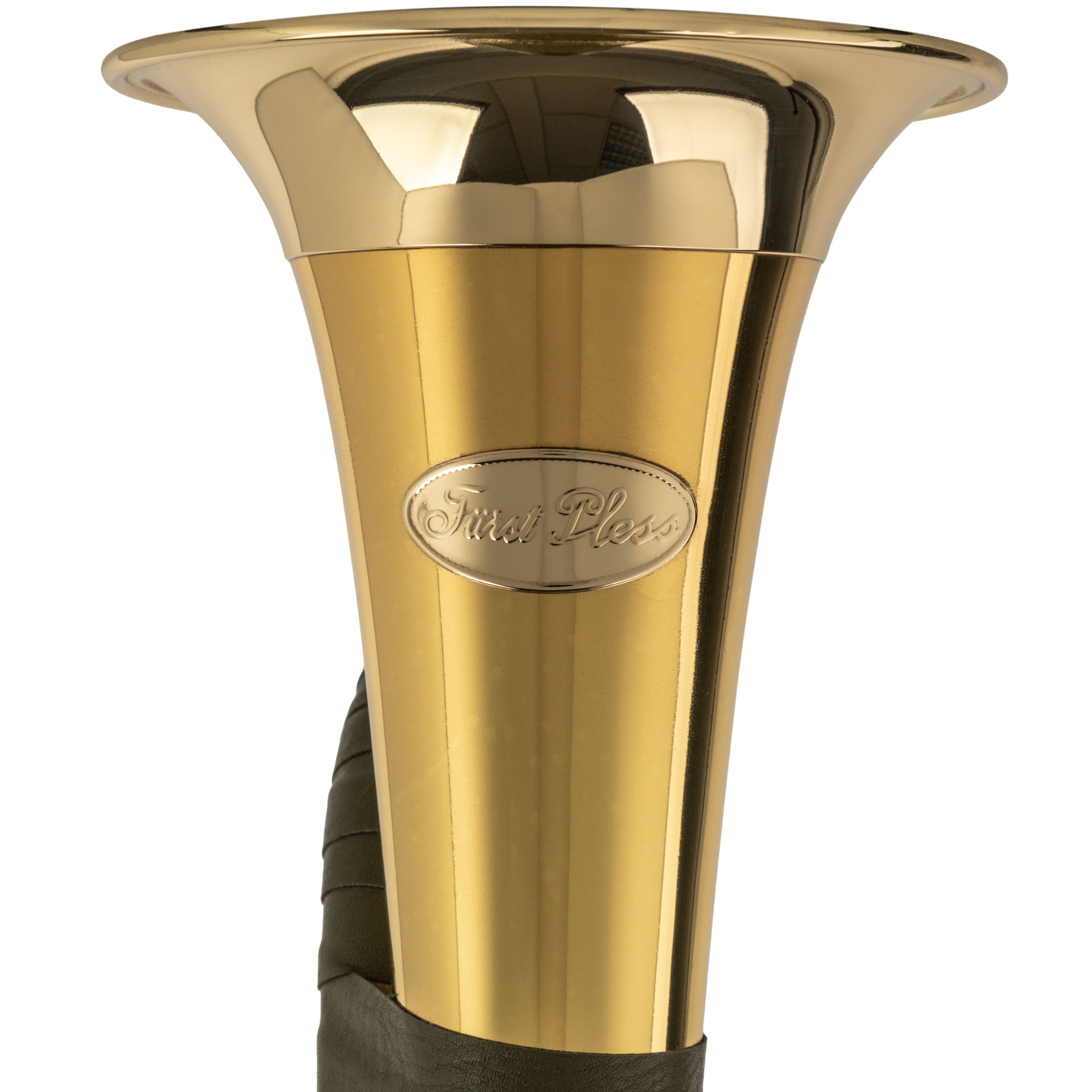 FMB-Fürst Pless Horn in B, Korpus und Schallstück aus Messing mit Neusilberkranz, einbrennlackiert mit Stimmzug aus Neusilber und Kunstlederumwicklung, inkl. Mundstück.