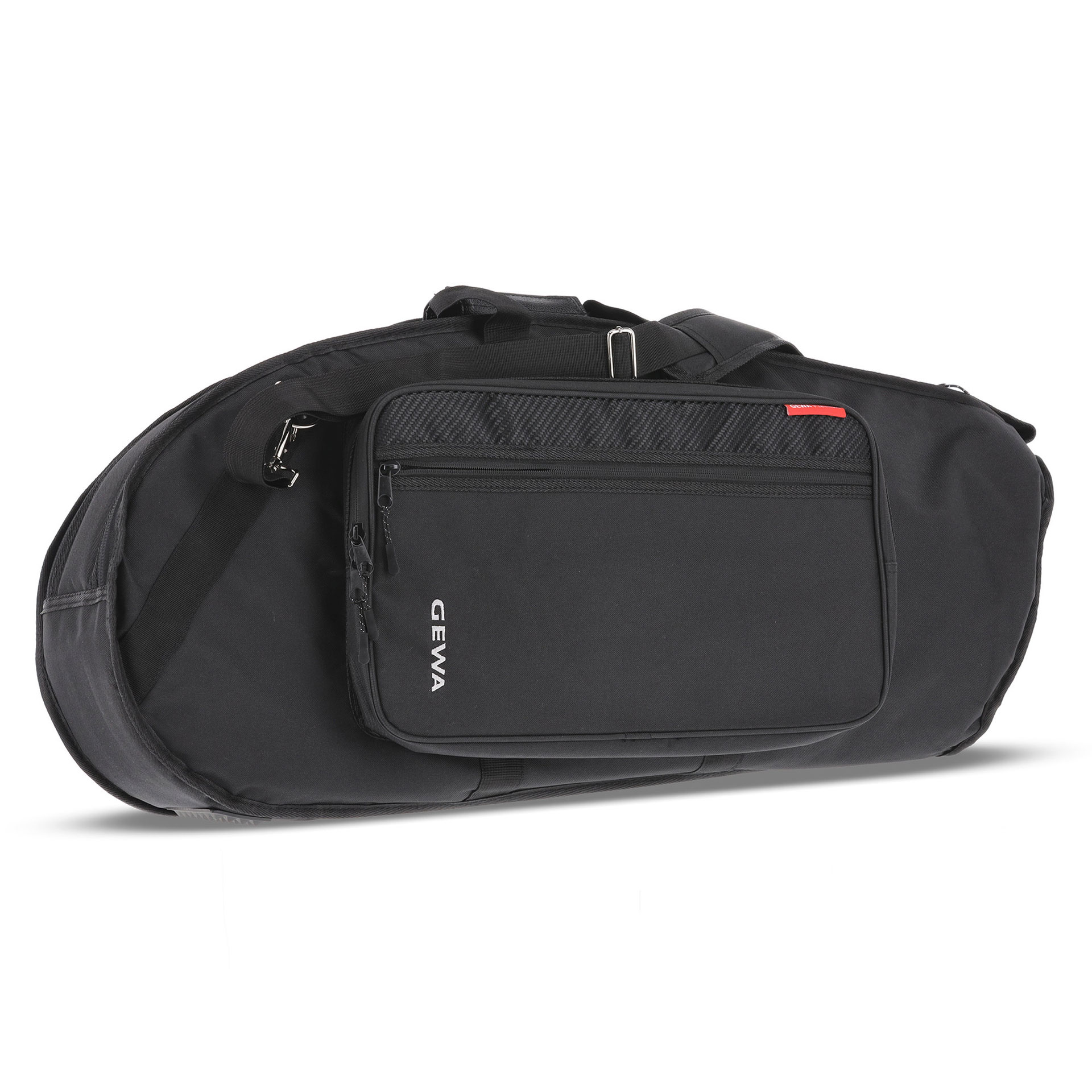 GEWA-Gig Bag Premium Tenorhorn, aus hochwertigem Cordura 600 Denier genäht, Reiss- und wasserfest, 30 mm Schaumstoffpolsterung, Sperrholzverstärkung für den Schallbecher, Fest angenähte, verstellbare Rucksackgurte, versenkbar Aufgenähte Zubehörtasche, Schultergurt, Farbe: schwarz, Gesamtlänge: 75 cm, Schalldurchmesser: 27 cm