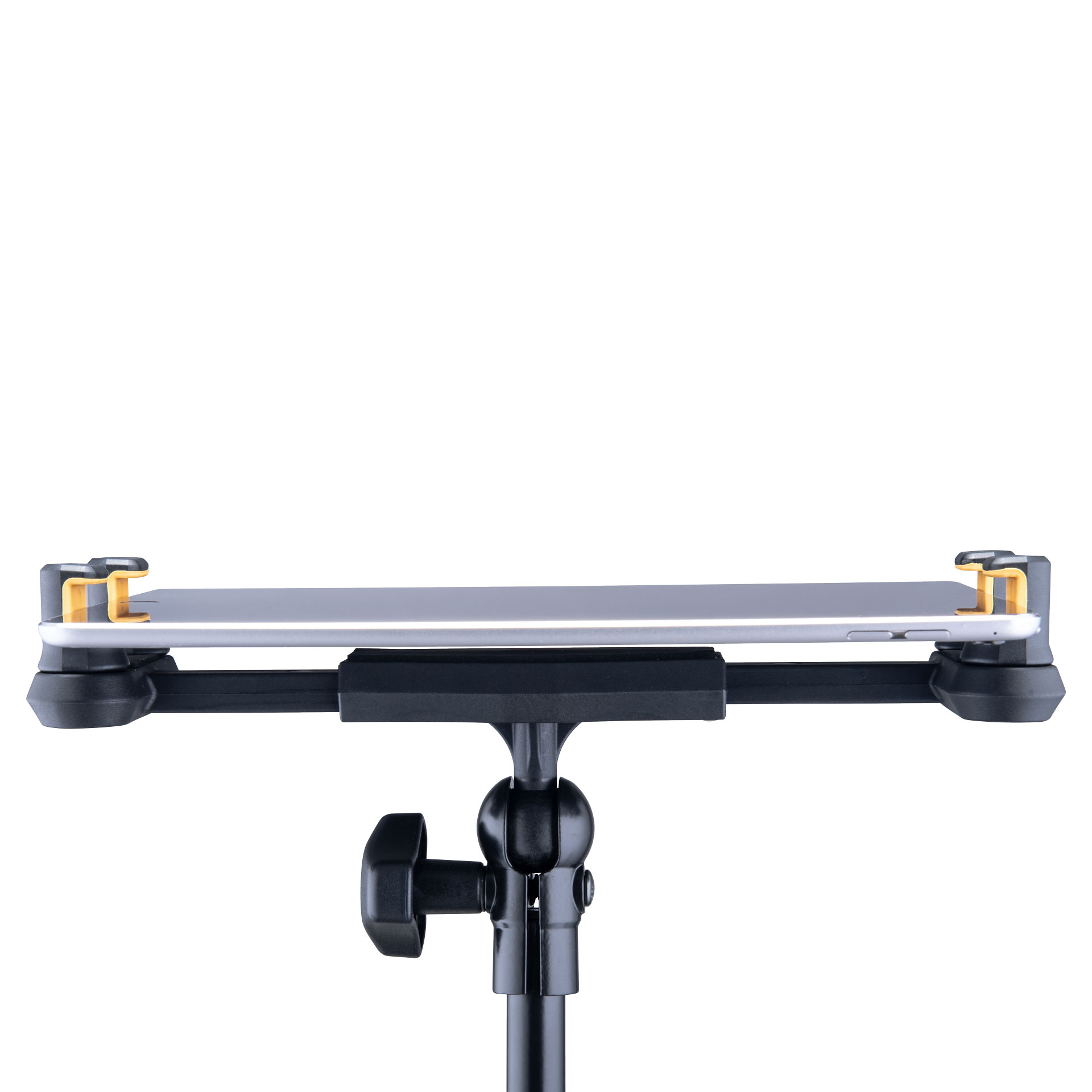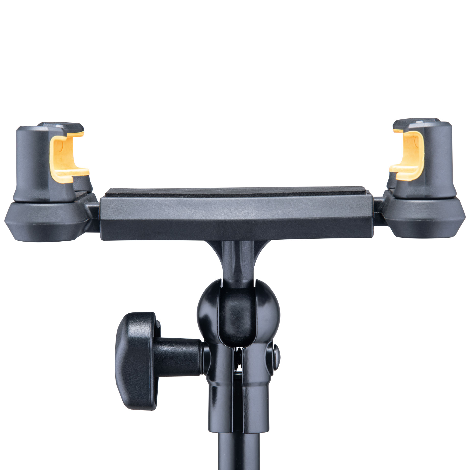 HERCULES Tablethalter HCDG-307B, der HERCULES HCDG-307B ist ein anpassungsfähiger 2-in-1 Tablet- und Smartphonehalter für die Verwendung im Studio oder zu Hause. Er lässt sich beispielsweise an runden Oberflächen wie Mikrofonständern oder Notenpulten, aber auch an Tischen anbringen. Der "TightVice" Verschlussmechanismus garantiert dabei eine sichere Befestigung. Kompatibel sind Smartphones und Tablets mit Größen zwischen 6.1"-13". Geeignet für Tablets & Smartphones mit einer Diagonalen von 15,5 - 33 cm (6.1" - 13"), 1/4-20 Stativgewinde, Zu befestigen an 3 cm (1.18") Tischen, Rund- & Rechteckstangen, Hülle oder Haltering muss nicht entfernt werden, Gewicht: 570 g (1.26 lbs), max. Belastung: 3 kg (6.6 lbs)