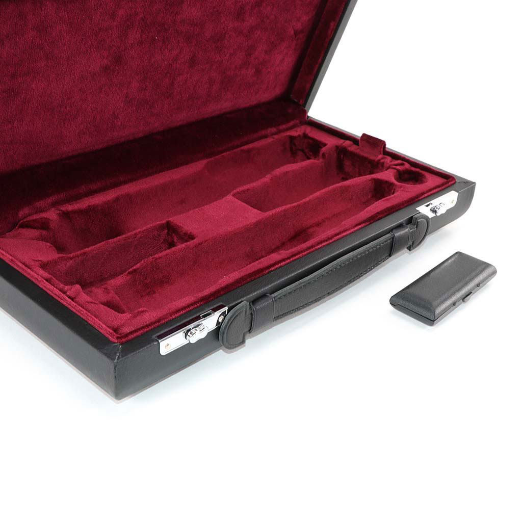 JAKOB WINTER Etui 710 für Oboe mit Rohretui. Das Form-Etui aus Holz ist mit einem hochwertigen Seiden- plüsch ausgeschlagen und besitzt zwei verchromte Schiebeschlösser und Stangenscharnier. Gewicht ca. 0,75 Kg.Außenmaße: ca. 340 x 180 x 70 mm