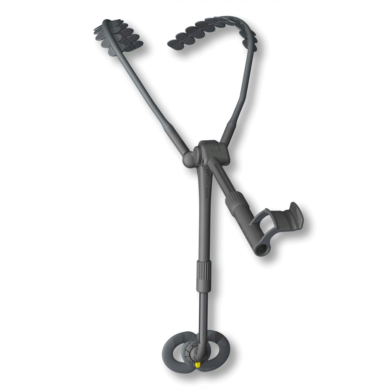 Jazzlab Trumpetholder XL. Das Halten der Trompete in den Händen verursacht Spannungen im ganzen Körper, was sich auch auf den Sound und Artikulation auswirkt. Besonders auch junge Spieler haben beim langen Üben oft nicht genug Kraft in den Armen. Hier hilft der TrumpetHolder. Der ganze Druck wird auf die Schultern übertragen, Hände und Körper bleiben entspannt und die ganze Energie kann an die Finger, den Ansatz, die Atmung und die Körperstellung fokussiert werden. TrumpetHolder ist mit den meisten Bauarten von Pumpventil-Trompeten und -Kornetts kompatibel. Eliminiert das Gewicht des Instrumentes vollständig. Hilft das Instrument in der richtigen Lage und Winkel zu halten. Ist anwendbar im Stehen, im Sitzen, auch für die Marschmusik geeignet. Ist mit einer Hand sekundenschnell zu bedienen. Zusammengefaltet sehr platzsparend