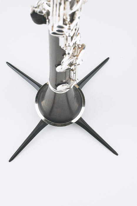 K&M Klarinettenständer 15222, 4 Füße, Kunststoffkegel, Unterteil zusammenlegbar, paßt beim Transport in das Schallstück/Unterteil des Instrumentes.