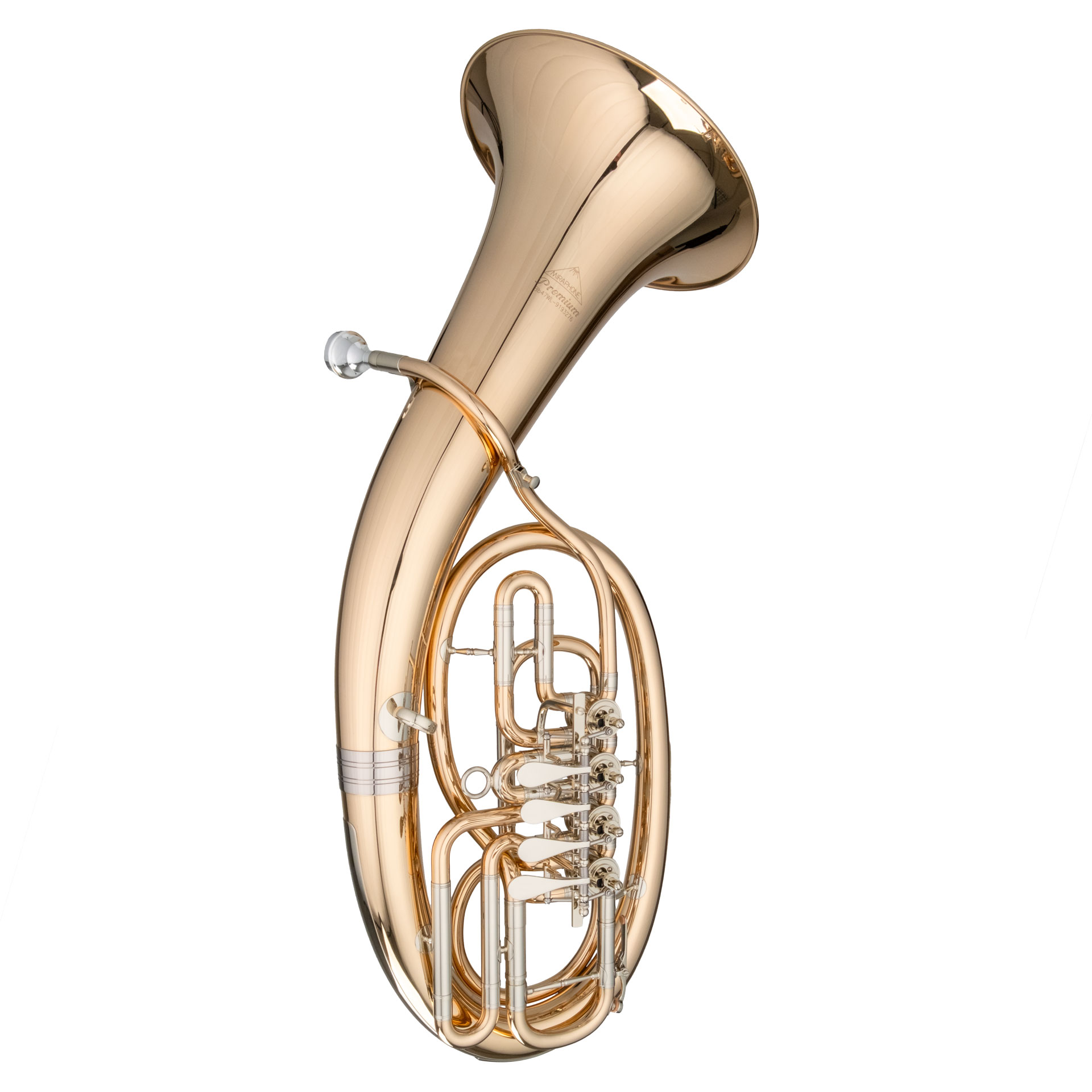 MIRAPHONE-Tenorhorn 47WL411000999 / Bauart: oval, weit, Schallstückdurchmesser 270 mm, 4 Ventile, Zylindermaschine, Modell Loimayr / Ausführung Maschine: kombinierte Goldmessing-Neusilber-Maschine, Spiralfederdruckwerk, CPU-Kugelgelenk, Bohrung 13,90 mm, Korpus: Goldmessing, Mundrohr Goldmessing / Oberfläche lackiert, ohne Koffer + höher gesetztes Mundrohr (wie Edition) + + flacher Kamm +