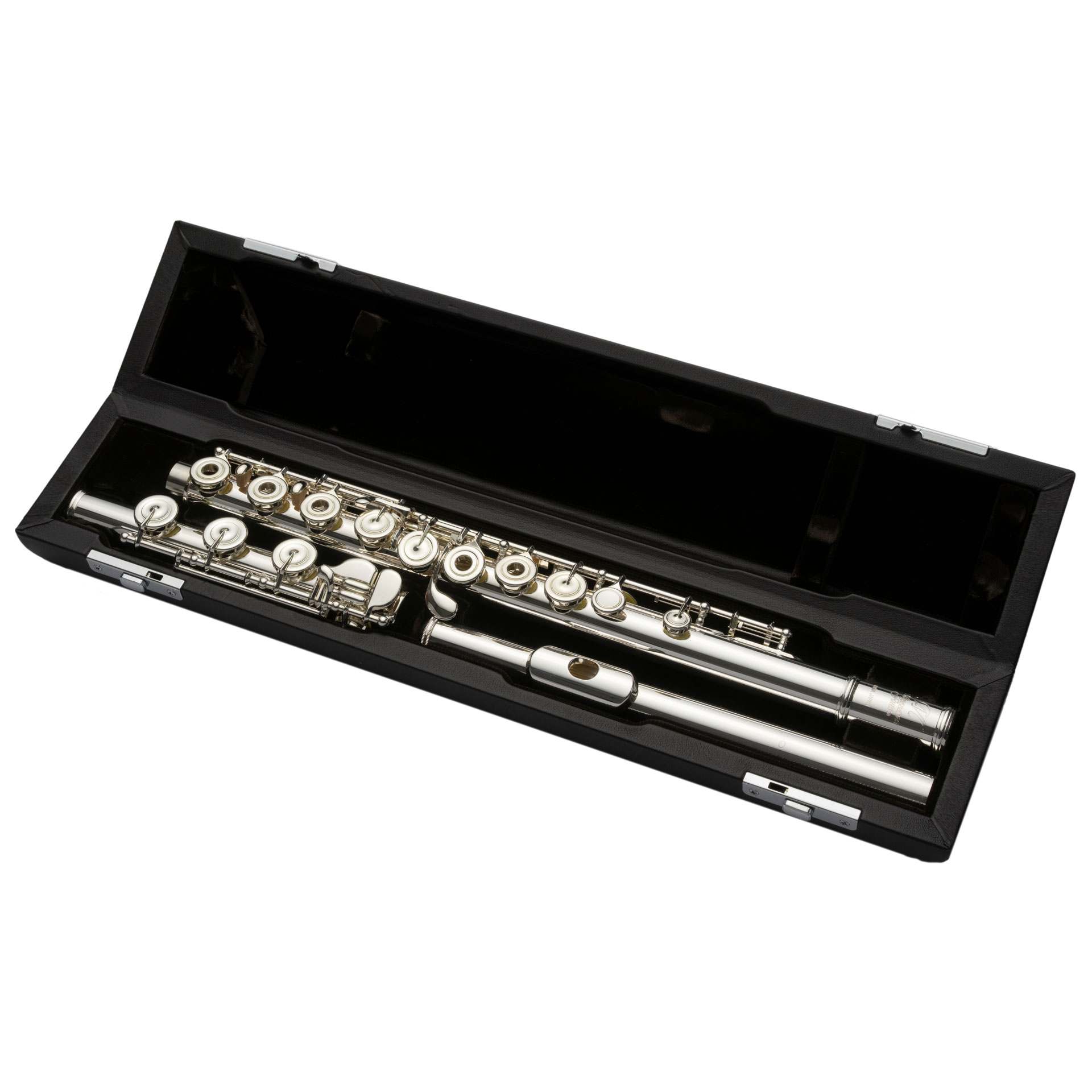 MIYAZAWA Flöte PB 202RE, Ringklappen, handgefertigte Neusilberflöte mit Kopfstück aus massivem Sterling Silber. Mechanik und Oberfläche versilbert. Gezogene Tonlöcher, Klappenfedern aus Edelstahl \"partial Brögger\"-stiftlose Mechanik für die Klappen