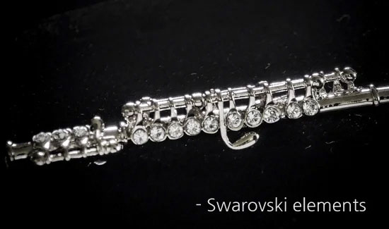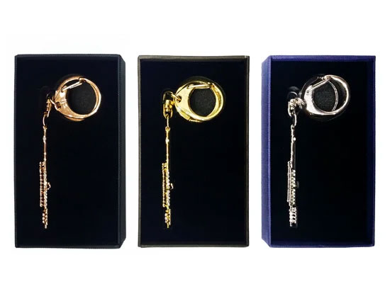 ROI Querflöte Schlüsselanhänger rosé vergoldet, der Schlüsselanhänger ist Handgefertigt mit Swarovski-Elementen.
