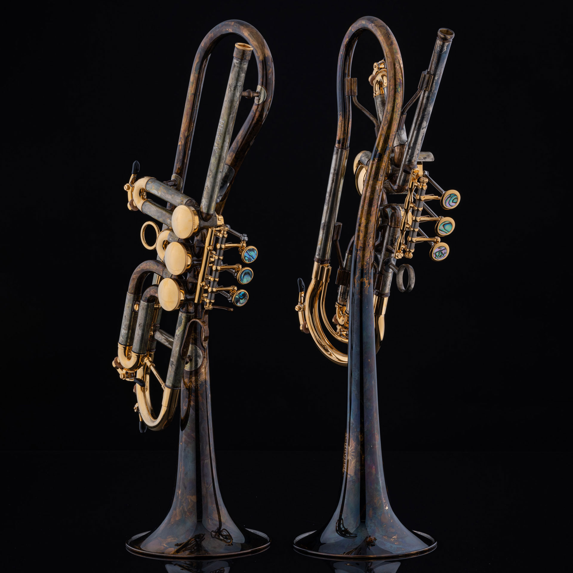 - nach oben gebogenes Schallstück für optimale Klangprojektion zum Publikum oder Mikrofon Drehventile im Perinetventil-Design