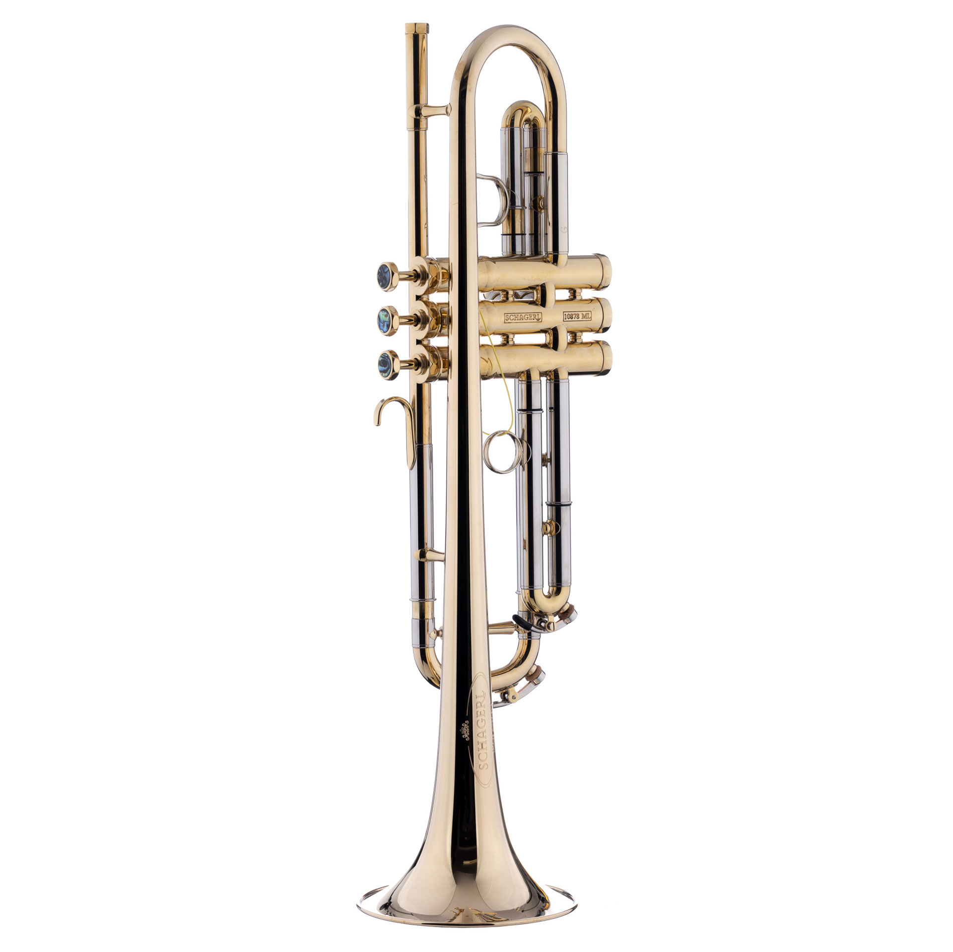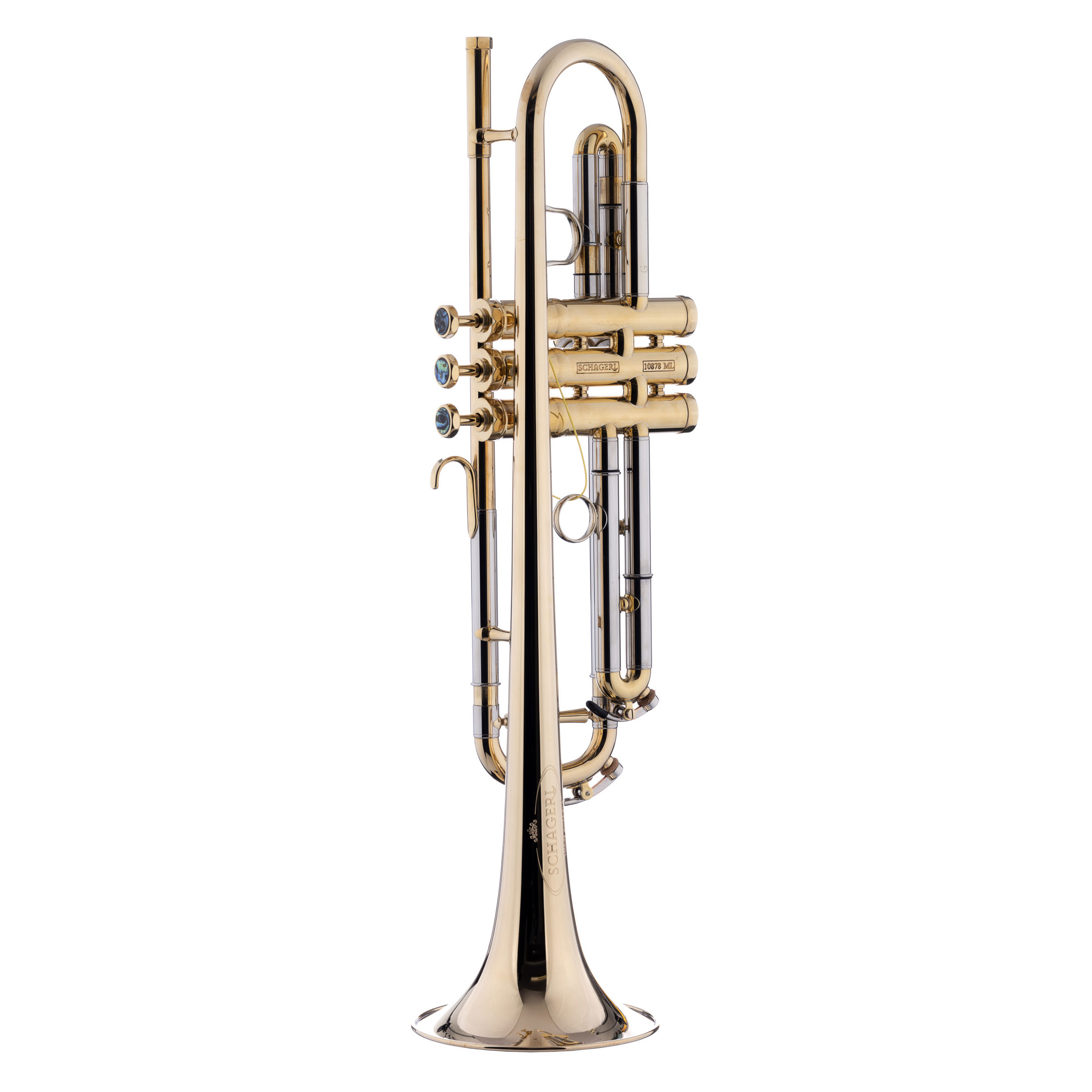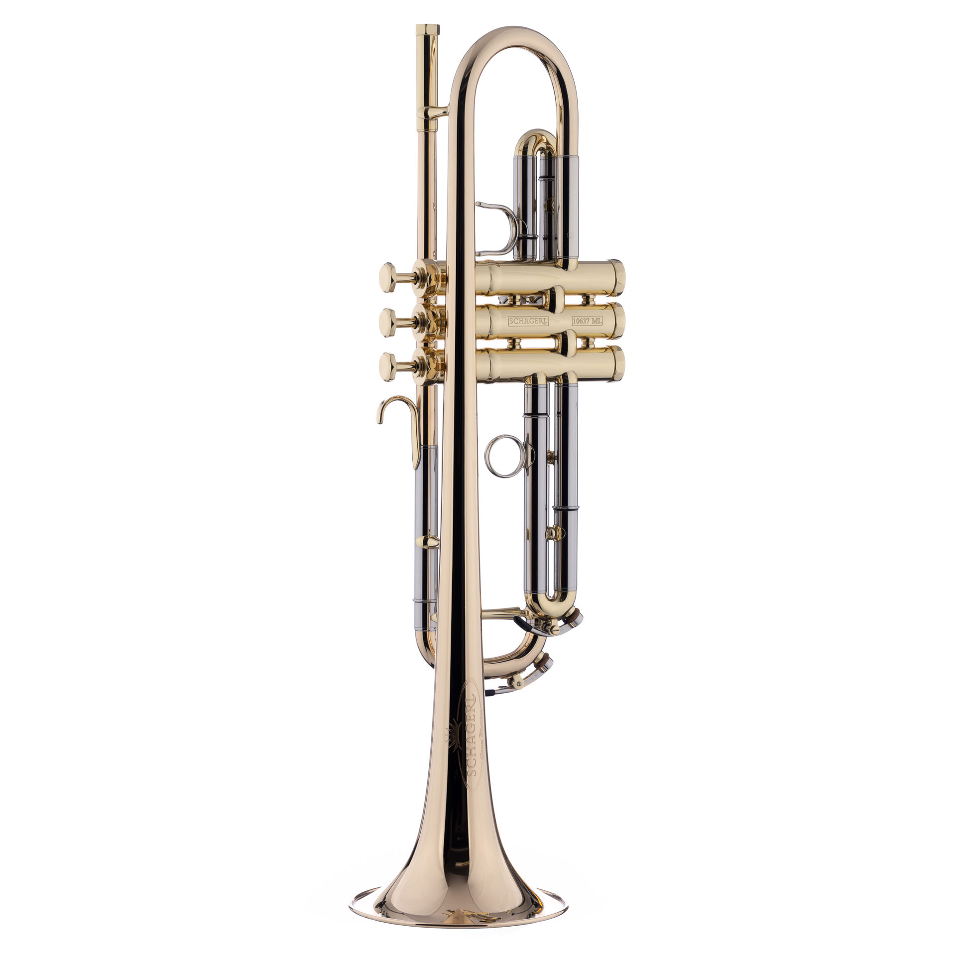 SCHAGERL-Trompete James Morrison Goldmessingschallbecher: 123 mm, Goldmessing-Mundrohr, Wandstärke: 0,50 mm, Ventilstock: ML, lackiert Dieses neue Modell entstand durch die Zusammenarbeit mit dem legendären Multi-Instrumentalist James Morrison. Er stand bei der Entwicklung dieses Modells Pate und hat seine Wünsche zusam-men mit den erfahrenen Schagerl-Instrumentenbauern umsetzen können: beste Intonation, leichte Ansprache und tragender, brillanter Klang. Dieses Instrument erlaubt das druckvolle Spiel genauso wie leise Balladen und ist besonders im Jazz-Bereich gut aufgehoben.
