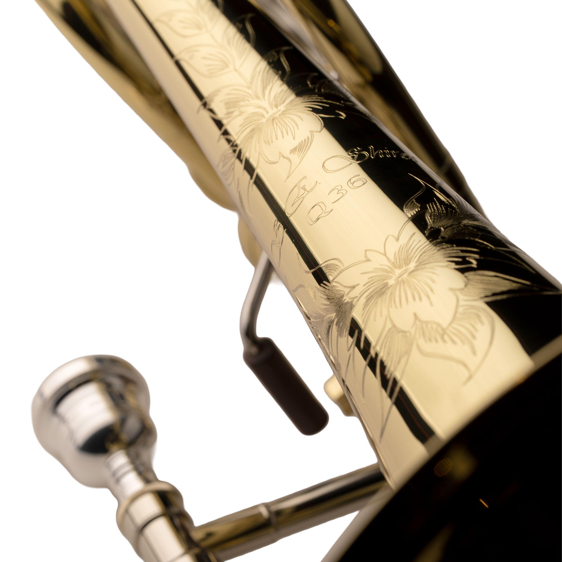 SHIRES-Bb/F/Ges Bassposaune TBQ36YA QBY-Schallstück: 91?2 Zoll, zweiteilig, handgehämmerte QII-Konusform aus leichtem Gelbmessing mit gelötetem Rand, unabhängige F/Ges-Axial-Flow-Ventile, Q62-Handzug: 0,562 Zoll, Gelbmessing in Standardgewicht Neusilber-Bogen QYB-Stimmzug , Drei austauschbare Mundrohre aus Gelbmessing. Schallstückgravur: S.E. Shires Herstellermarke und traditionelles Blumenmuster. Inklusive Q-Serie Basskoffer, Mundstück und Pflege-Set. Die vielseitige Bassposaune Q36YR zeichnet sich durch die Klangreinheit und Projektion aus, für die Instrumente von S.E. Shires bekannt sind. Das QYB-Schallstück verfügt über eine 91?2-Zoll-konische, zweiteilige, handgehämmerte QII-Konstruktion aus Gelbmessing mit gelöteter Wulst, die dieser Posaune einen klaren, singenden Ton mit ausgezeichneter Projektion und Klarheit sowie einem vollen, tiefen Bassregister und einem breiten Klang verleiht. Der breite Handzug mit einer Bohrung von 0,562 Zoll aus Standard-Gelbmessing sorgt für einen breiten Klang, der Klarheit, Farbe und Projektion beibehält. Der Handzugkrümmer aus Nickel verleiht den Artikulationen Klarheit und Brillanz. Die unabhängigen Drehventile behalten in allen Registern ihre Präzision, ohne den Komfort oder die Klarheit im Ventilregister zu beeinträchtigen. Dieses unabhängige Ventilsystem ermöglicht eine größere Flexibilität bei der Wahl der Ventil- und Zugposition. Die Bassposaune Q36YR fügt sich in jedes Ensemble ein und ist eine ausgezeichnete Wahl für jede Situation.
