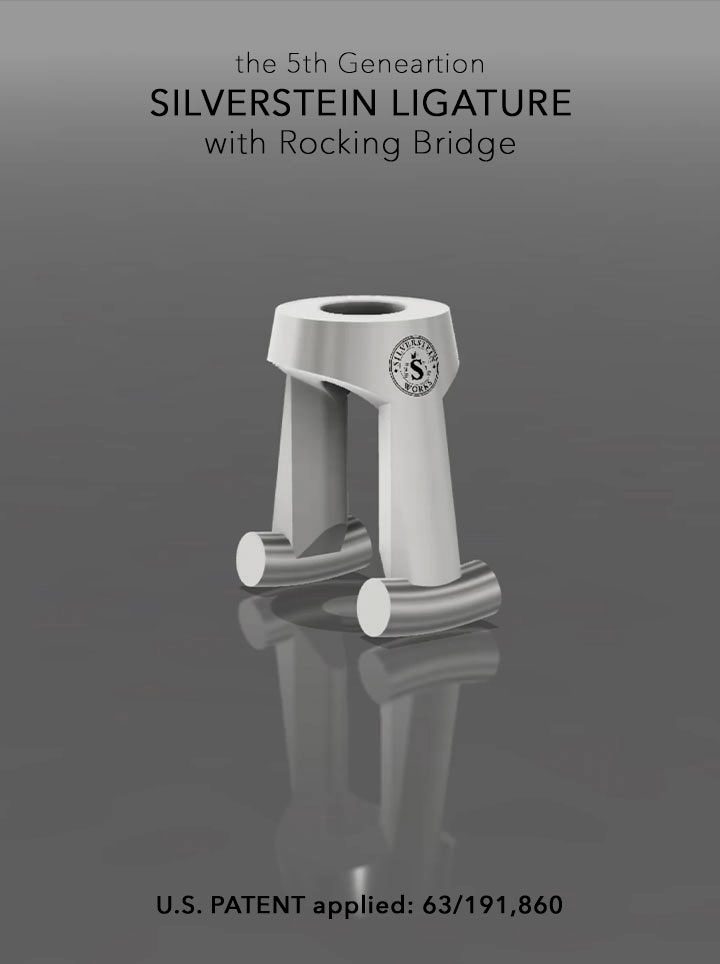 SILVERSTEIN-Blattschraube -QUATTRO- Tenorsaxophon medium Silver Generation 5. NEU! Patentierte Schaukelbrücke. Gen. 5 Silverstein-Ligaturen zeichnen sich durch eine komplett neu gestaltete Brücke aus. Durch die Schaukelbewegung des Stegs wird automatisch eine optimale Ausrichtung mit Ihrem Mundstück erreicht und die verlängerten Füße sorgen für sicheren Halt und verhindern ein verrutschen, auch beim schnellen Mundstückwechsel. Der direkte Kontakt der Stegfüße am Mundstück fungiert als Resonanzplatten, die Ihr Setup für maximale und effiziente Klangerzeugung weiter verbessert. Die SILVERSTEIN Blattschraube ist eine innovative Weiterentwicklung des klassischen Konzepts. Eine minimalistische Schnur-basierte Blattschraube, die die natürlichen Eigenschwingungen des Blattes befreit. Die neue SILVERSTEIN Blattschraube bringt dieses Konzept weiter. Nach dem Experimentieren mit neuen Schnur Designs und Legierungen hat die SILVERSTEIN Blattschraube einen dünne Schnur und einen raffinierten Strang erhalten, die einen geringen Kontakt und Druck auf dem Blatt aufbauen so das die freien Schwingungen zusätzlich unterstützt werden. Das macht den Unterschied. Die neue gestaltete Schnur ermöglicht eine größere Kontrolle und dynamische Bahnbreite und hilft dabei einen reicheren Ton aufzubauen. Die SILVERSTEIN-Blattschraube -Original- Bb-Klarinette deutsch Silver Generation 5 wird mit OmniCap, Gummischuhe für die Schaukelbrücke, 1,5 mm Inbusschlüssel und Bedienungsanleitung geliefert und passt für folgende Tenorsaxophonmundstücke: * Vandoren: Java * Otto Link: Tone Edge * Meyer: Hard Rubber * Lebayle: LR III * Jody Jazz: Giant, HR * Claude Lakey: Hard Rubber