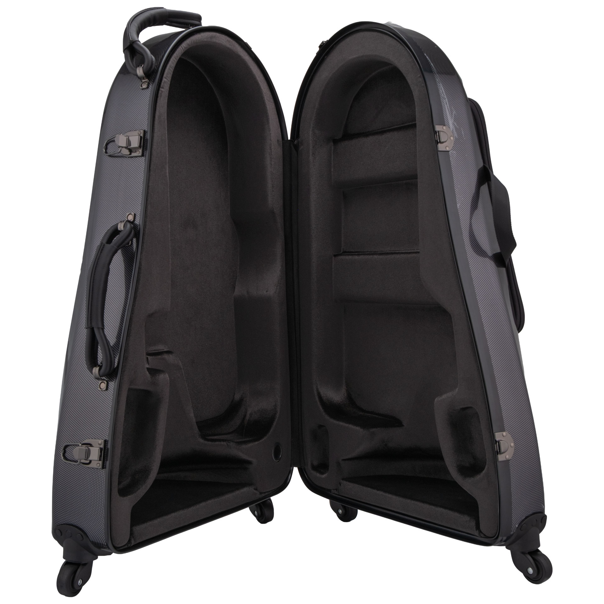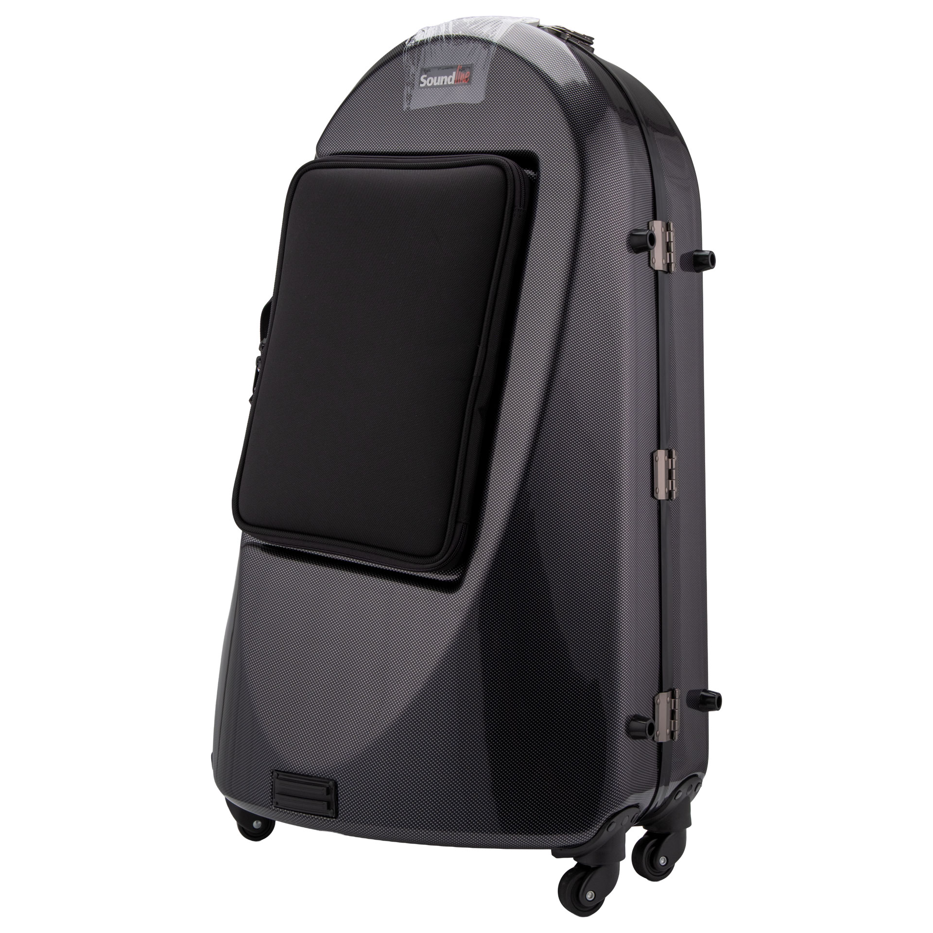 SOUNDLINE Koffer Euphonium Carbon Style, schwarz Glasfaserkoffer, Stabiler Griff, Bügelschlösser, Rucksackkonstruktion, gepolsterte Tragegurte, Spezial Gummidichtung, Rollen, Premium Samtfütterung, Schwebelagerung, Zubehörfach