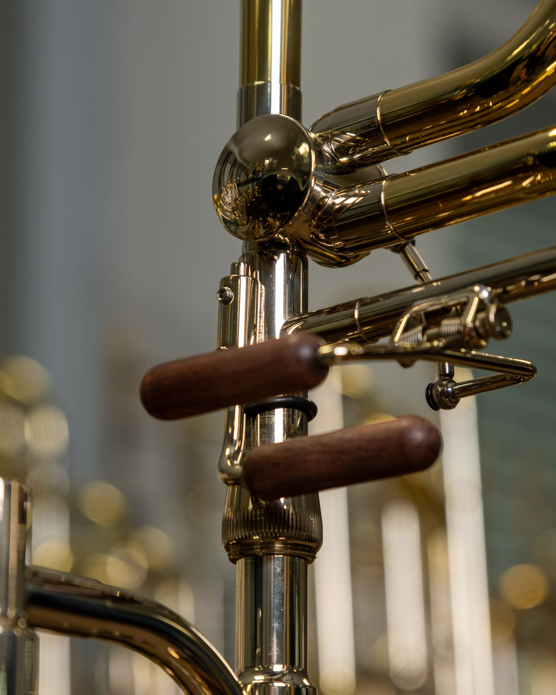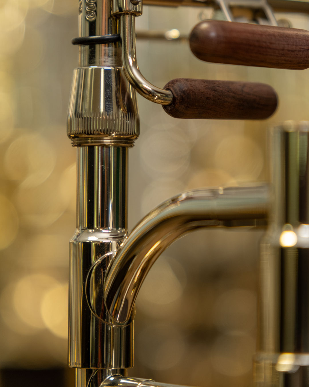 VOIGT BRASS-B/F-Tenorposaune JV-180-OG -Ambition-. Geradlinige Optik - aber ausgestattet mit allem, was Voigt Brass Posaunen auszeichnet: Leichte Ansprache, warmer Klang, einwandfreie Balance. Die JV-180-OG ist die universale Step-Up Posaune für ambitionierte Posaunisten. Wie alle Voigt Brass Instrumente gefertigt in 100% deutscher Handarbeit. Messing mit Goldmessing-Schallstück, Quartventilzug in offener Bauweise (open wrap), Zugbogen: 13,9 mm, Schallstückdurchmesser: 220 mm, verstellbare Daumenstütze, ergonomischer Quersteg, Außenzug und Zugbogen aus Neusilber, klarlackiert, inkl. Koffer mit Rucksackgarnitur und Mundstück.